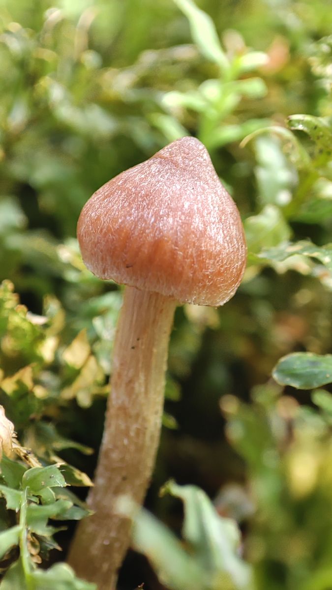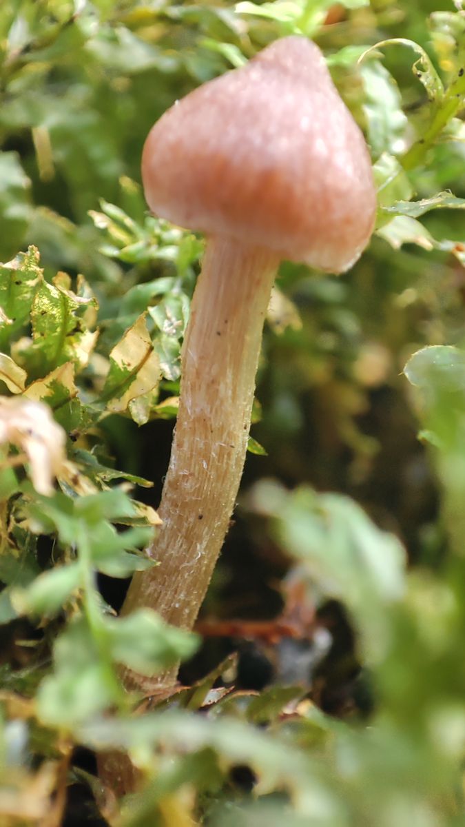 Der Schärfebereich des Makros meiner Handykamera ist sehr klein. Hier sieht man gut den fleischrosa faserigen Hut mit "Zipfel":