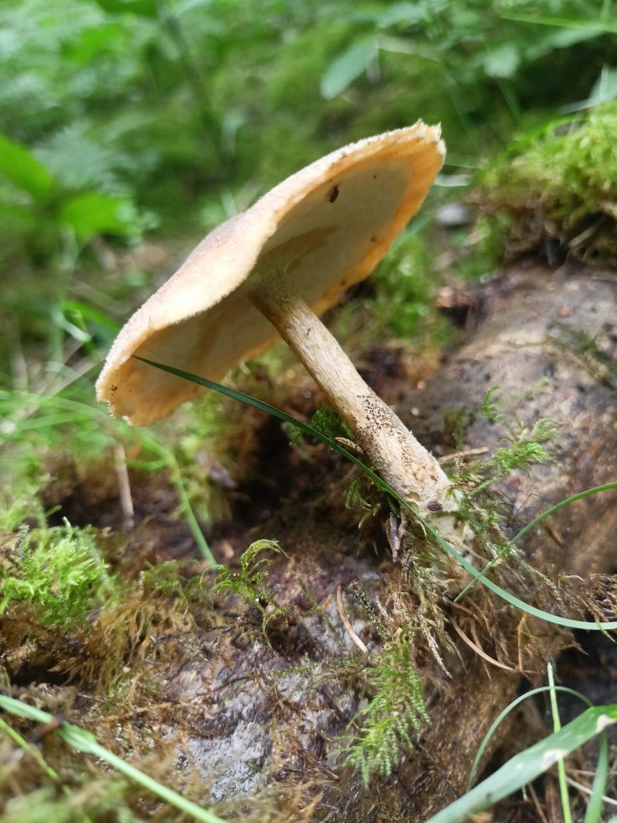 Ich habe heute im Wald eine interessante Entdeckung gemacht. Ein Röhrling (?) bzw. ein Pilz mit filziger Unterseite und braunem filzigem Hut. Der Hut war von der Konsistenz fest und, wie man auf den Fotos sehen kann, auch relativ dünn. Der Stiel ebenso. Ich habe den Pilz am Substrat gelassen, von daher kann ich nicht genau sagen, wie der Stiel von innen aussieht. Als ich gesehen habe, dass er auf Holz wächst, war ich verwundert. Ich habe auch ein Foto vom Stamm gemacht. Vielleicht hilft das ja bei der Bestimmung. Ein wirklich spannender Pilz. Hat jemand eine Ahnung, was das sein könnte?