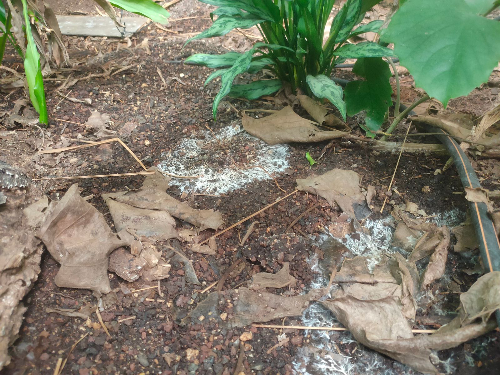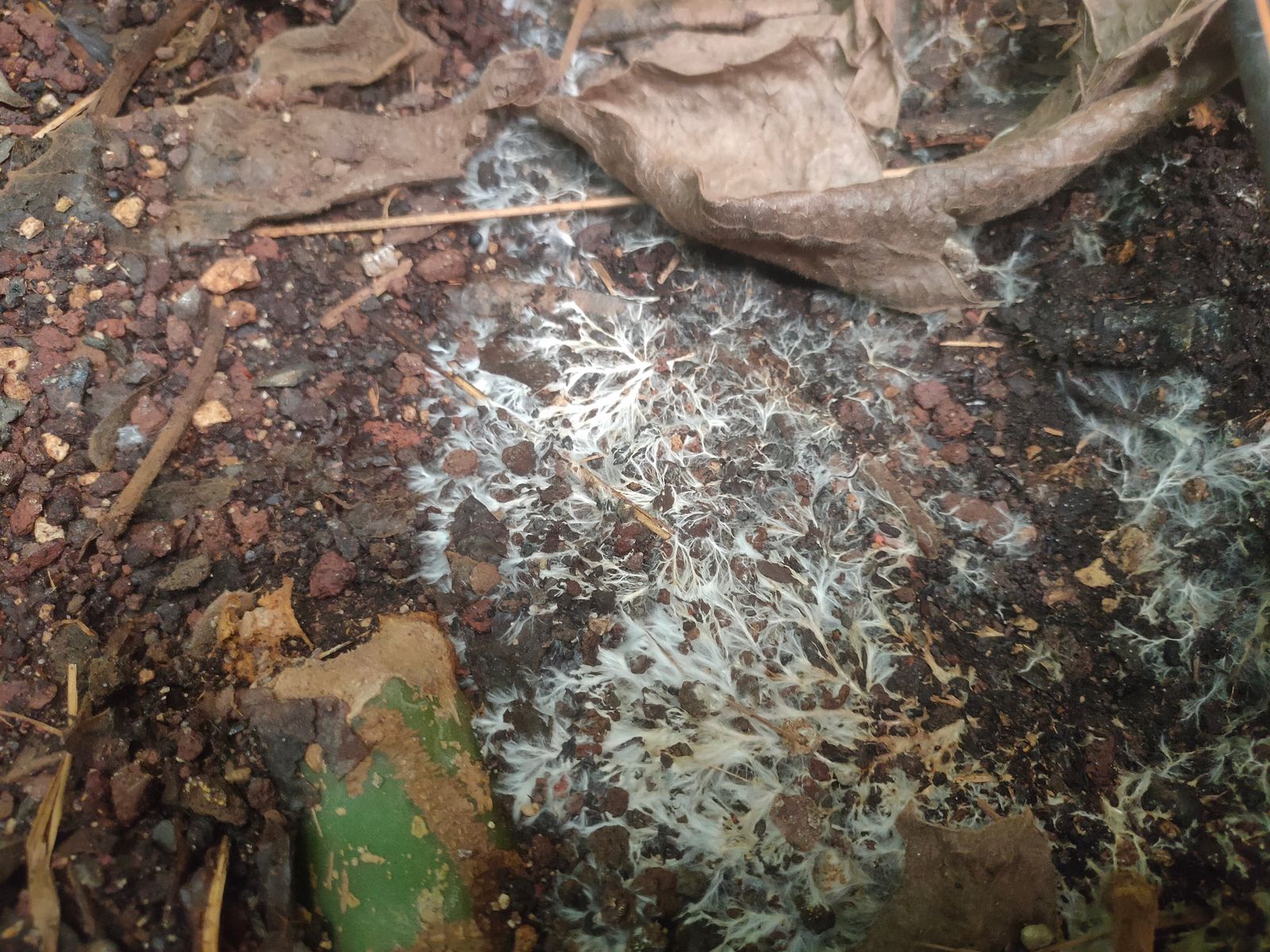 Wäre eine Schimmelpilzart eine Option? Für die abgestorbenen oberflächigen Blätter scheint er sich nicht zu interessieren.