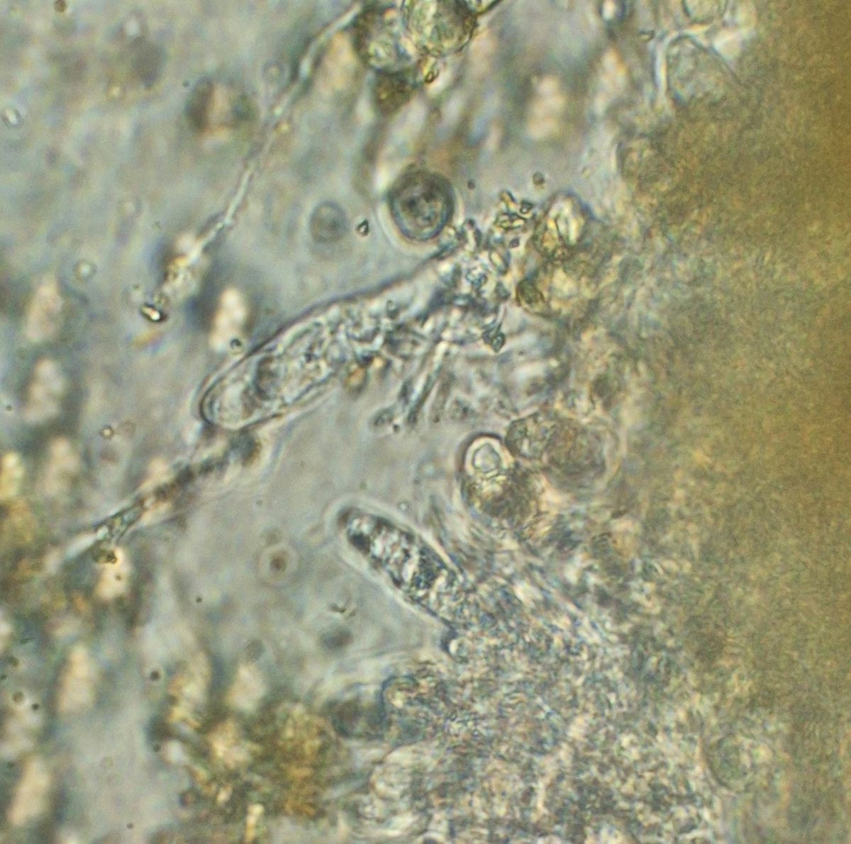diese Probe mitsamt Substrat in KOH 3%, ungequetscht, glasiger Stiel