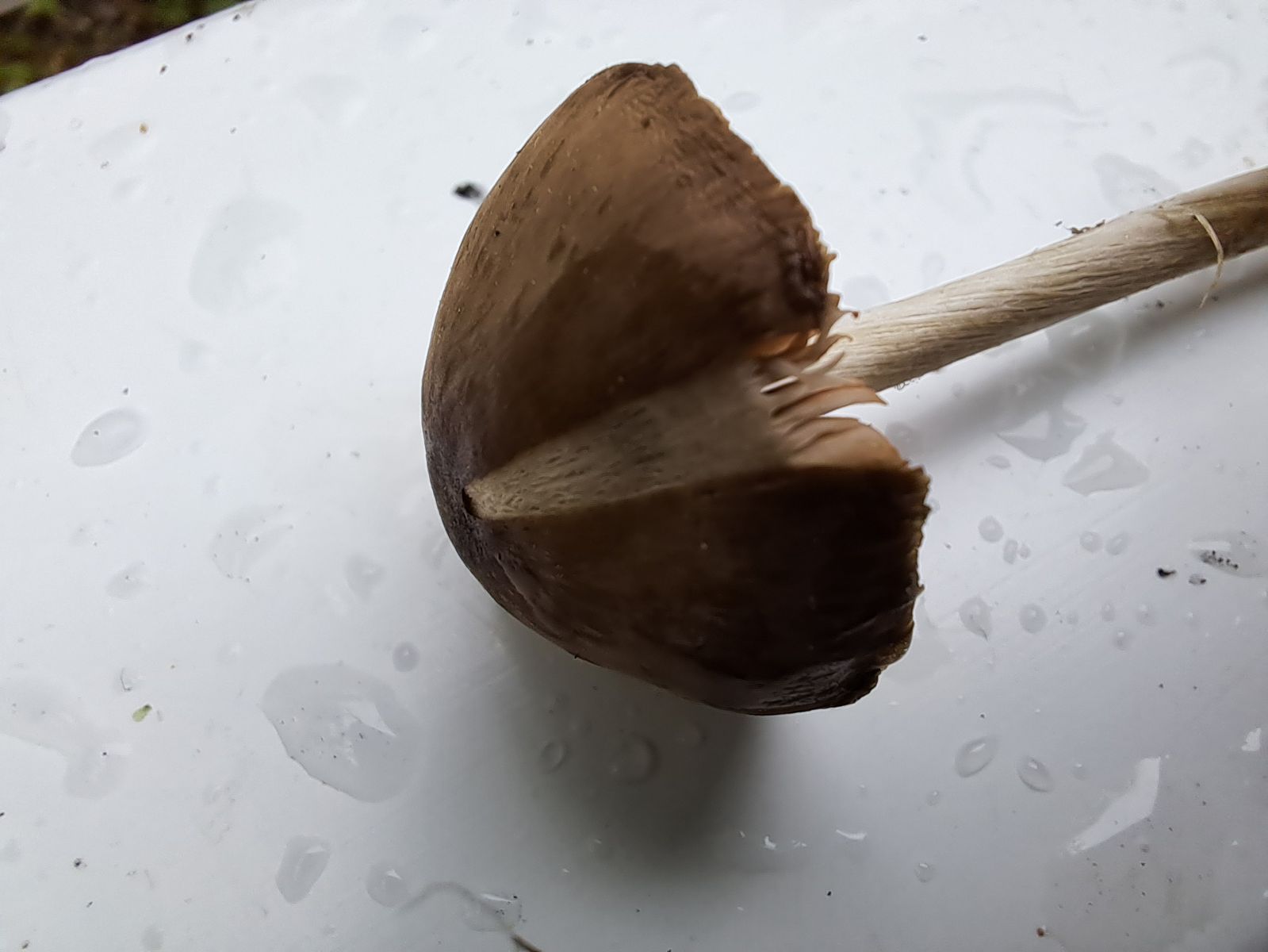 Eigentlich war ich mir mit Entoloma Sekt. Nolanea sicher. Mehliger Geruch, deshalb nicht Entoloma vernum, eher E.sericeum, oder Ähnliches. Heute schaue ich noch einmal auf die Bilder und sehe im vorletztem Bild freie Lamellen. Täusche ich mich? Birke und etwas Nadeliges hatte es auch in der Nähe, Pluteus sp. ausgeschlossen?