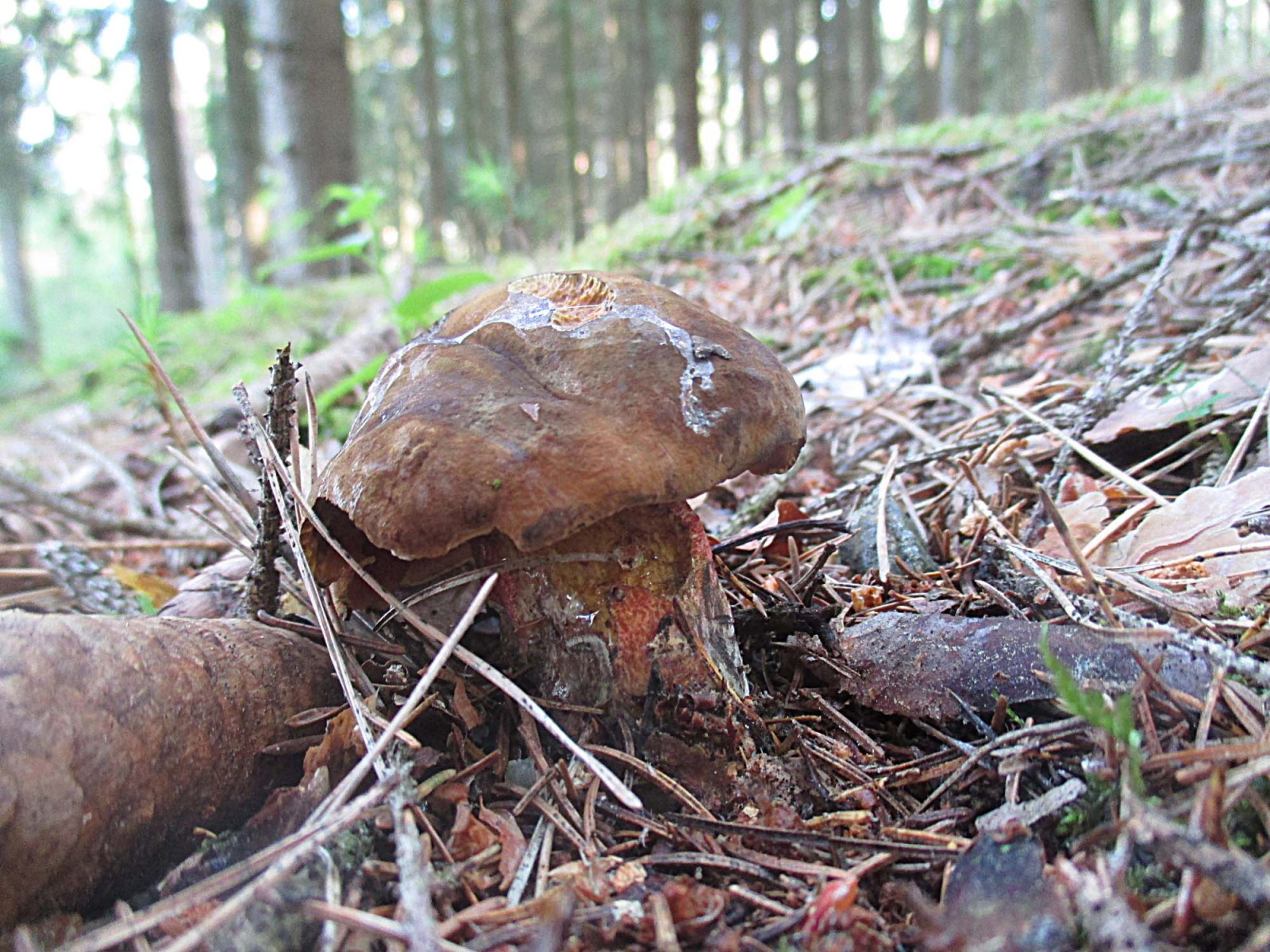 Die habe ich dort noch nie gesehen. Dann zeigte sich im reinen Fichtenhochwald noch ein kleiner Flocki den ich mit gutem Gewissen Neoboletus erythropus nennen darf.