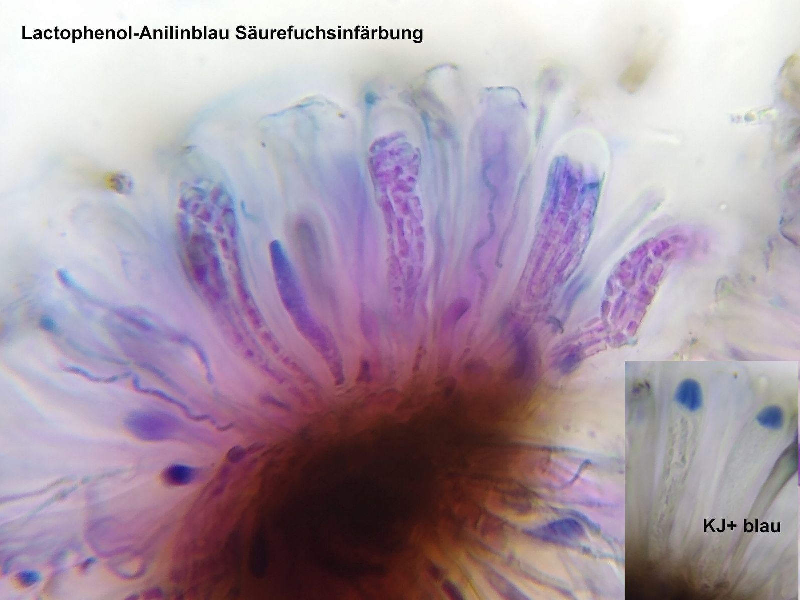 Bild 8 Gefärbte Sporen in den Schläuchen