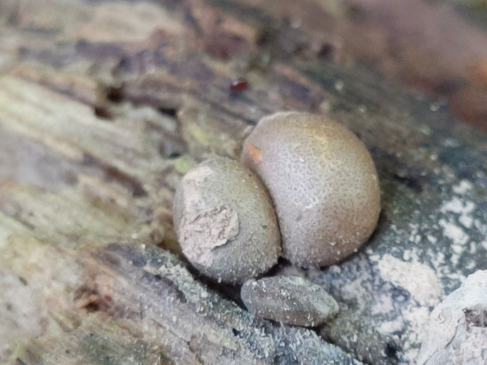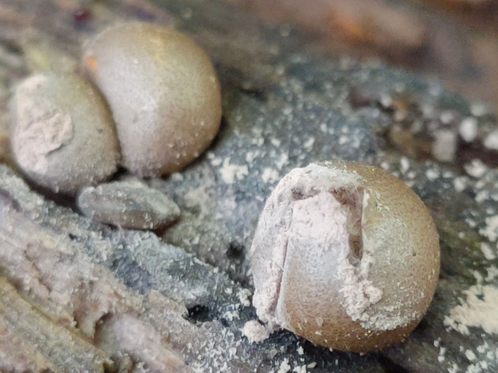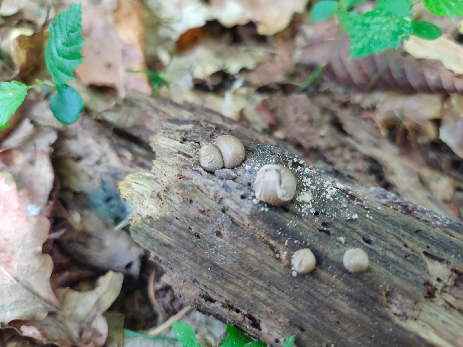 Meine kurze Recherche: kalk- lehmhalte Bodenverhältnisse auf Nadelholz Substrat mit hellen ubrabraunen Sporenpulver lässt mich an Lycoperdon umbrinum denken.