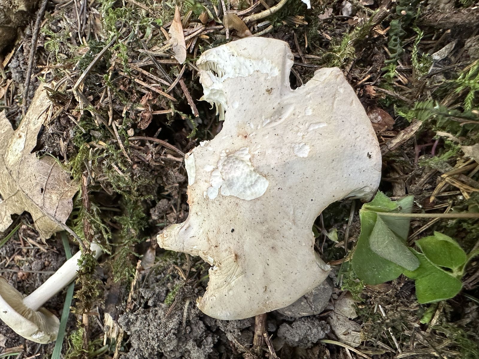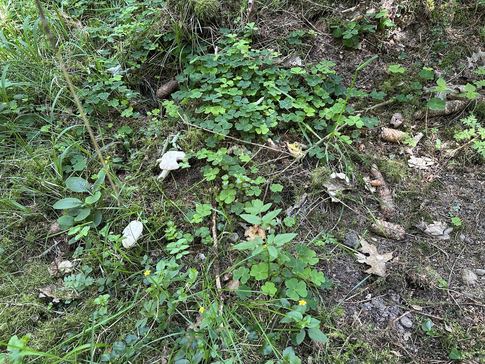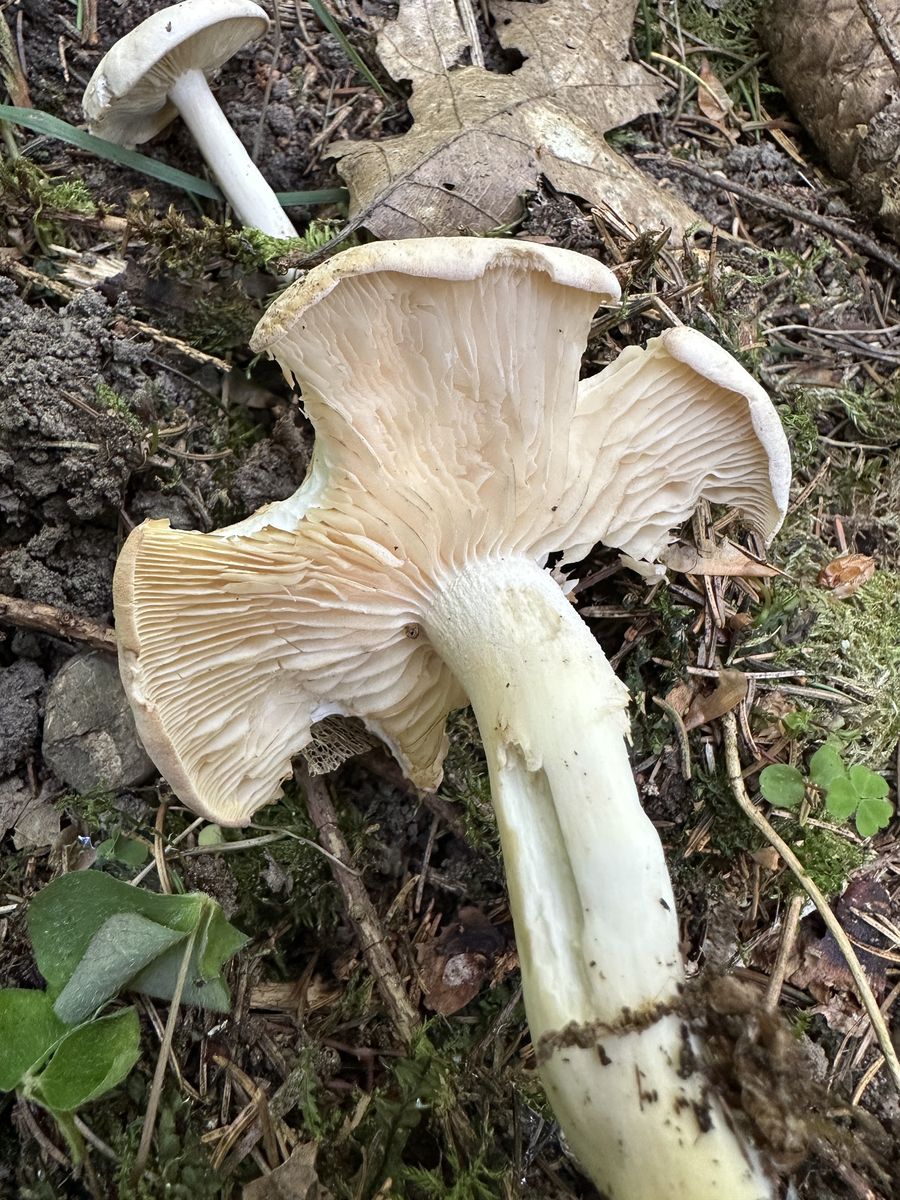 1. Fundort am Waldrand eines Fichtenforsts. Mein erster Gedanke tendierte Richtung Maipilz, aber wenn ich mir den kleineren Fruchtkörper daneben anschaue, erscheint er mir zu schmächtig.