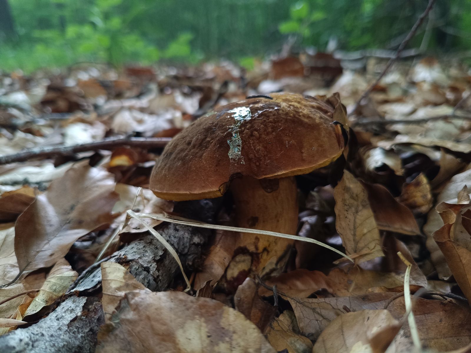 Etwas weiter dann ein weiteres Habitat, wo es eine große Artenvielfalt gibt. Dort ist allerdings noch nicht viel los. Ein einzelner Sommersteinpilz zeigte allerdings, dass es wohl auch dort bald losgehen wird.