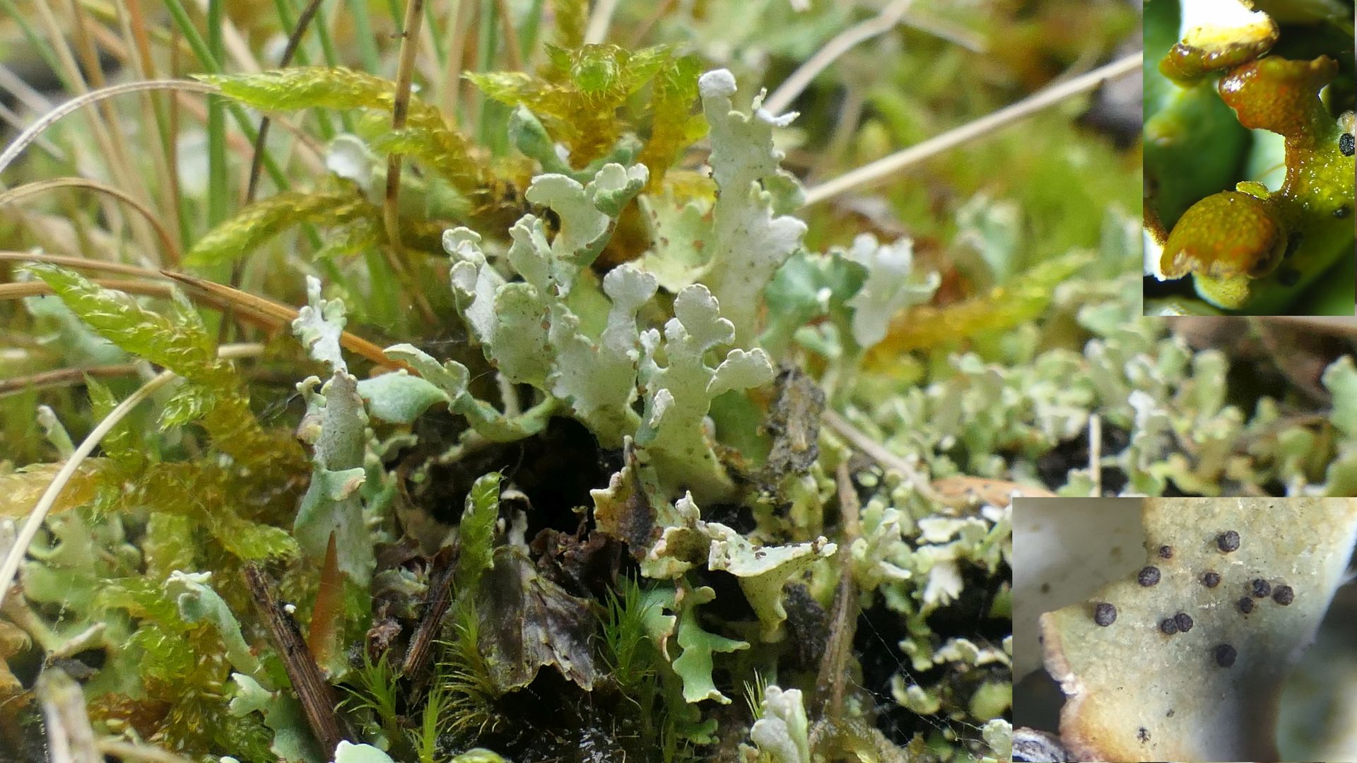 C. rangiformis ist gut ansprechbar durch die kleinen Schüppchen an den Podetien (Bildeinsatz).