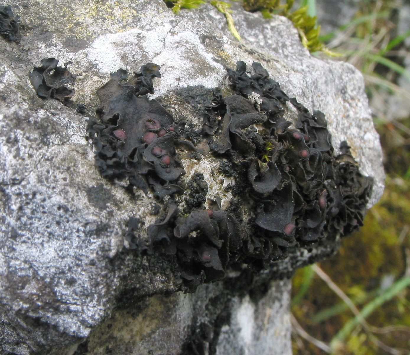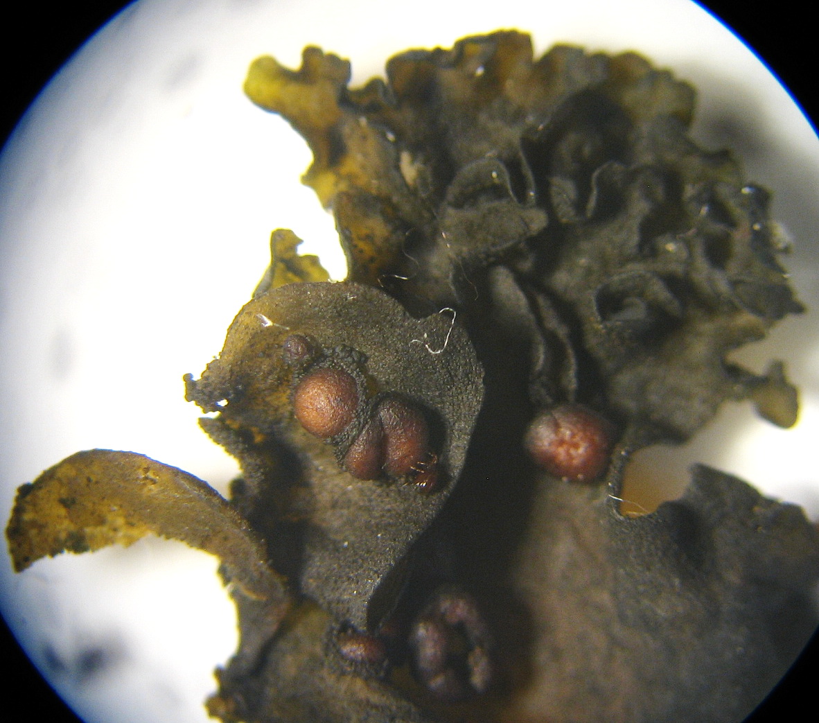 Der Thallus ist von Cyanobakterien überwachsen und dadurch schwarz gefärbt.
