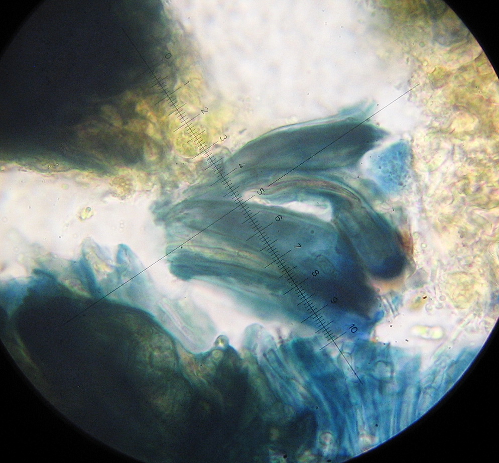 Das Hymenium ist hemiamyloid und reagiert entsprechend J+rot, die Sporen sind J-, sie verfärben sich ledigleich gelb (Bildeinsatz).