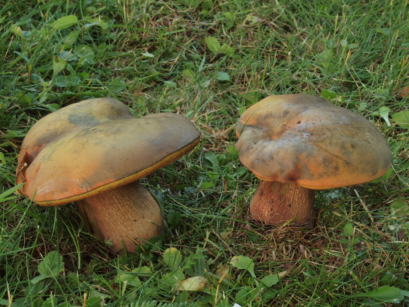 Auf dem Rückweg zum Auto an bekannter Stelle noch eine Gruppe Hexenröhrlinge. Im Schnitt färbte sich das Hutfleisch rot schlug jedoch sofort in blau um, was man nur fotografisch festhalten kann wenn einer schneidet und der andere sofort mit der Kamera bereit steht. Ob der Varietätsrang berechtigt ist, wird von manchen Autoren bezweifelt.