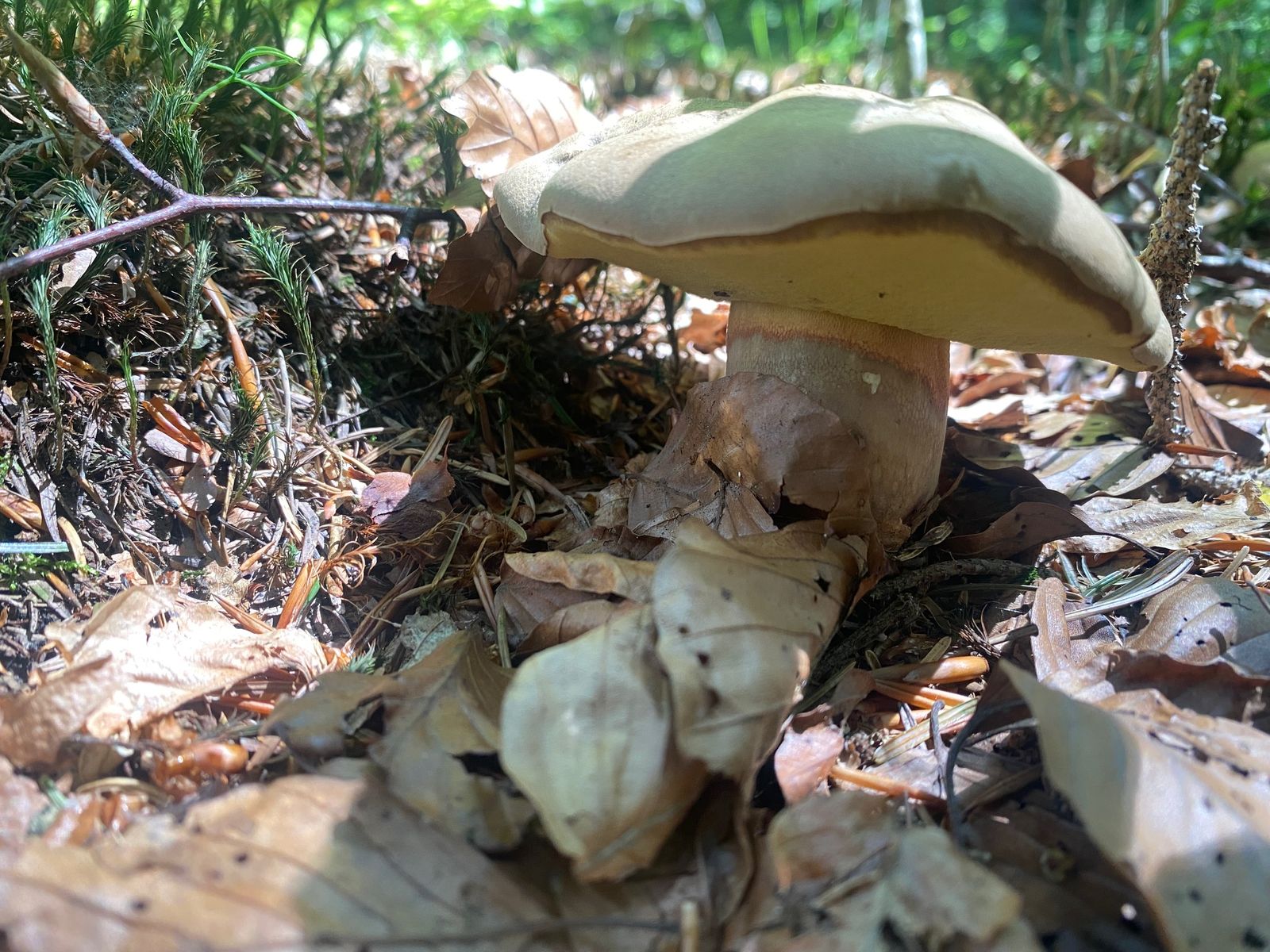 Da dachte ich zuerst an einen Schönfussröhrling - der Stamm passt mir aber nicht ganz. Ev. ein Sommersteinpilz (Boletus aestivalis) oder Gemeiner Steinpilz (Boletus edulis)?