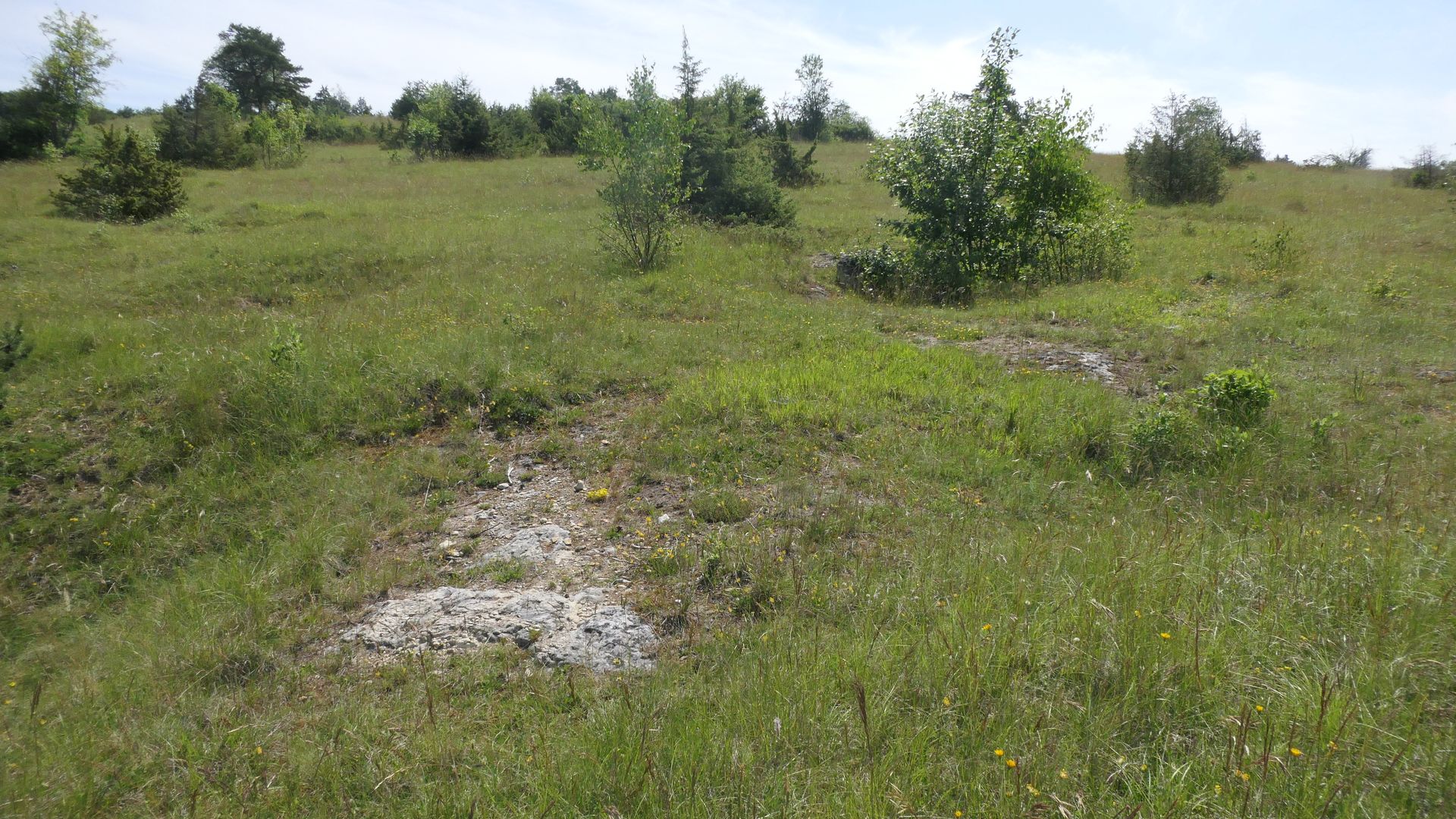 Bild 1 Trocker, warmer Magerrasen unter blauem Himmel, über Dolomit, der Sonne entgegen geneigt.