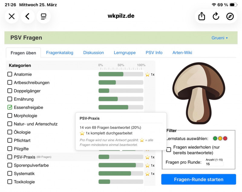 da die Pilzschulen nun die Prüfungstermine für 2026 veröffentlicht haben, möchte ich euch mein Projekt wkpilz.de ans Herz legen. Ich habe diese Plattform allein ins Leben gerufen, um eine interaktive und moderne Vorbereitung auf die PSV-Prüfung zu ermöglichen.