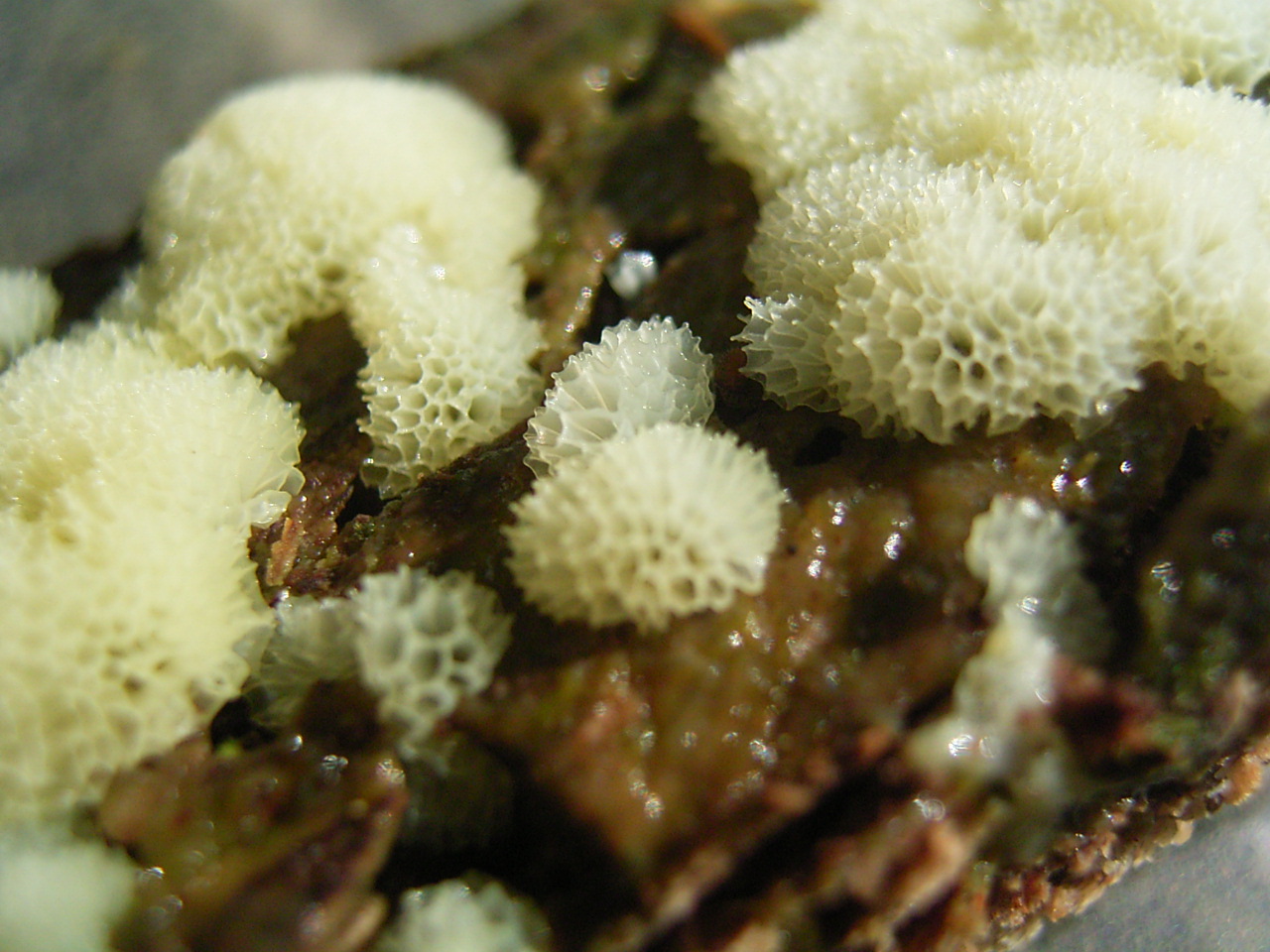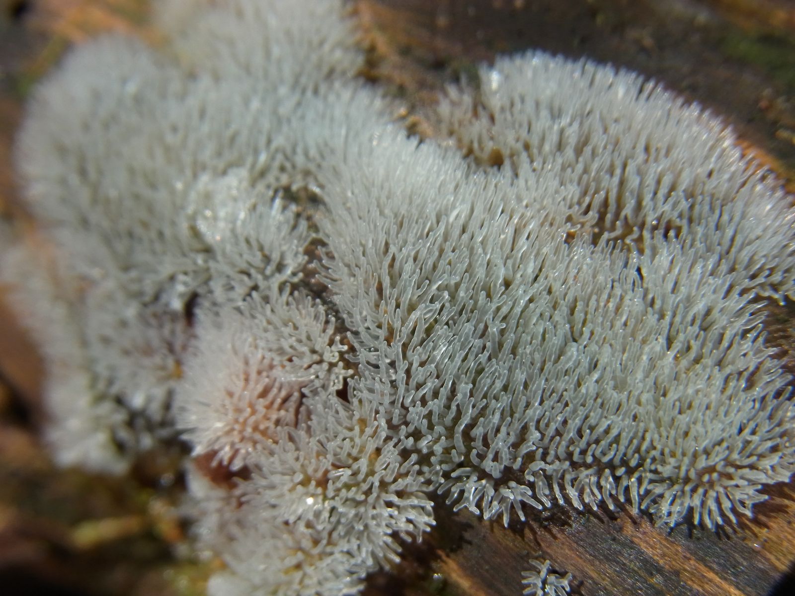 Ich bin mir bei beiden unsicher. Der weiße könnte Ceratiomyxa fruticulosa var. porioides sein, ist aber im Vergleich zu Bildern aus dem Internet sehr flach und hat unter sich diese Schleimschicht.