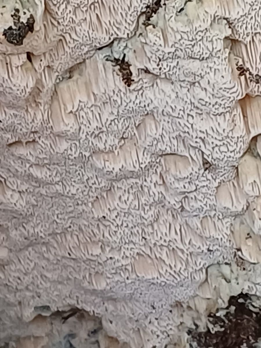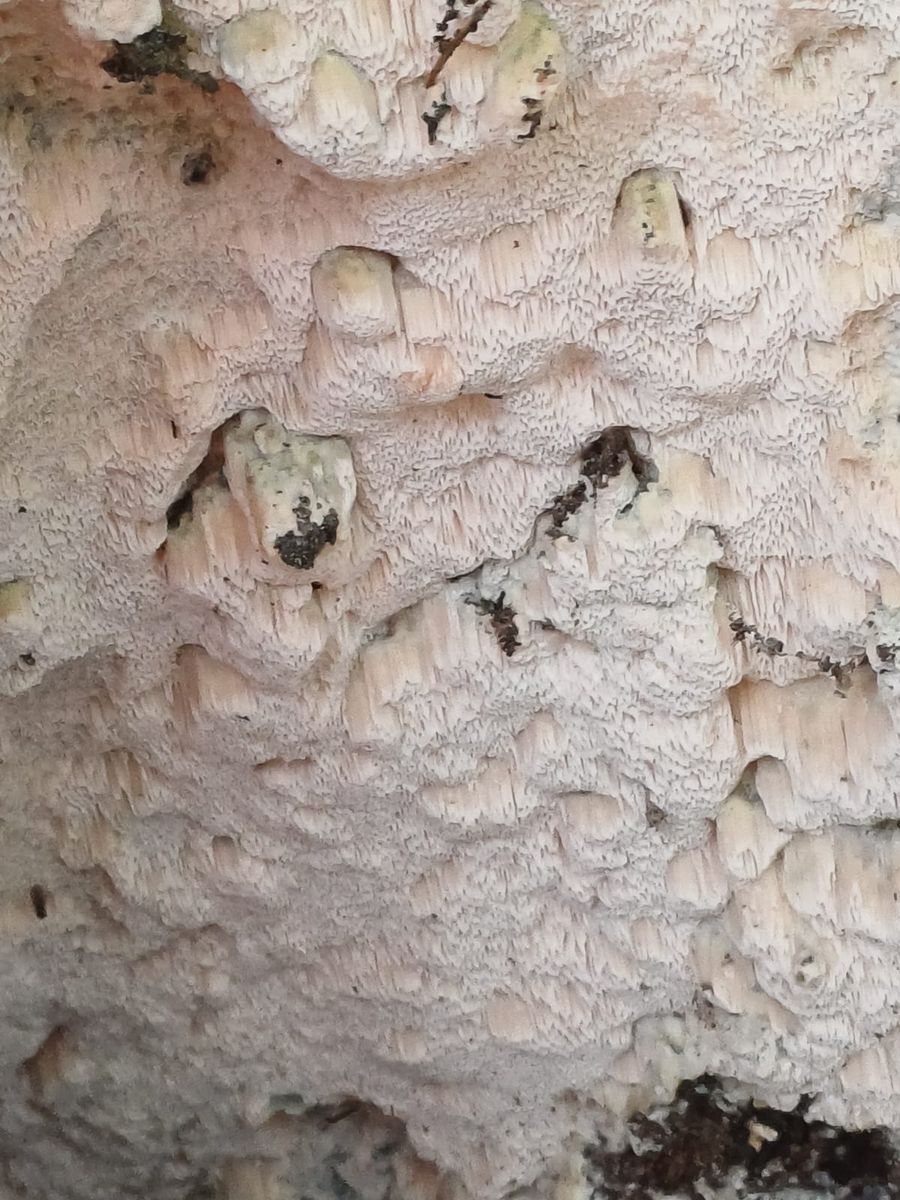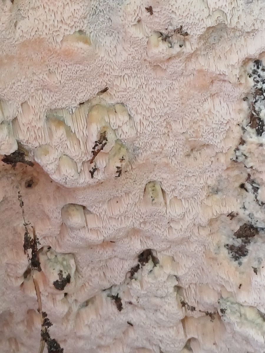 Ich denke hier an rhodonia placenta der wirt ist eine Lärche und es riecht fruchtig lg aber sicher bin ich nicht.