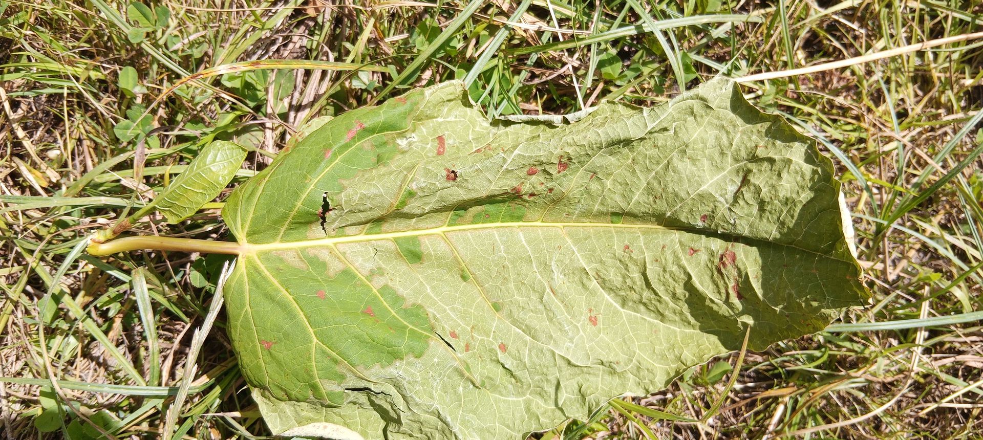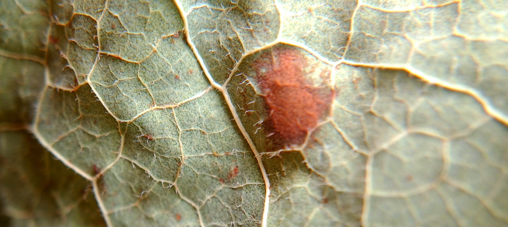 Jetzt ein Handyfoto von der Unterseite. Ich hoffe, das es ein (Rost)Pilz ist.