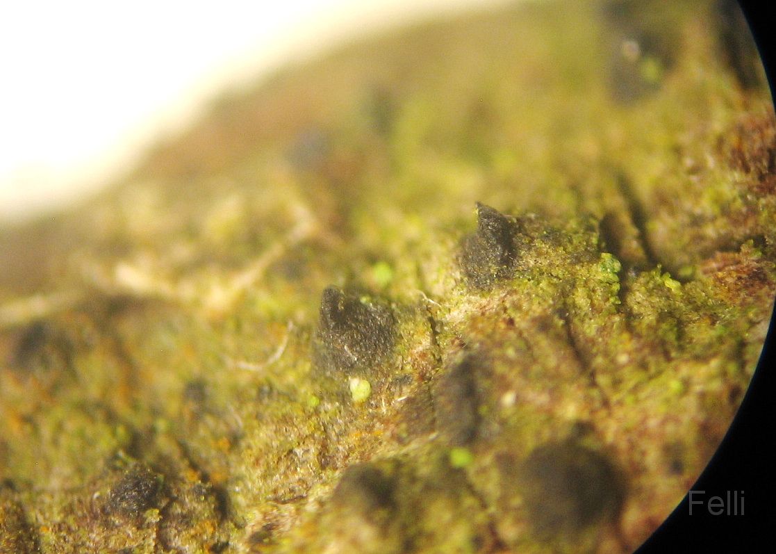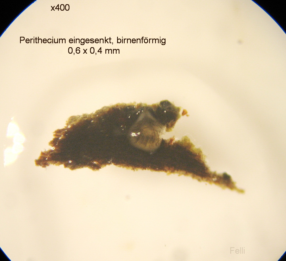 sind die Perithecien in die Rinde eingesenkt, breit birnenförmig, schwarz, mit rundlicher Ostiole.