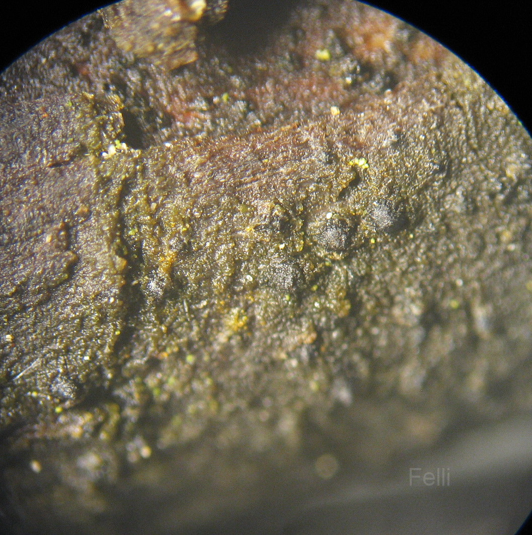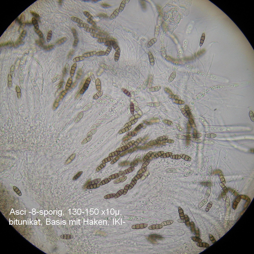 sind schwarze Perithecien mit "dickem Bauch" und plattgedrückter Spitze