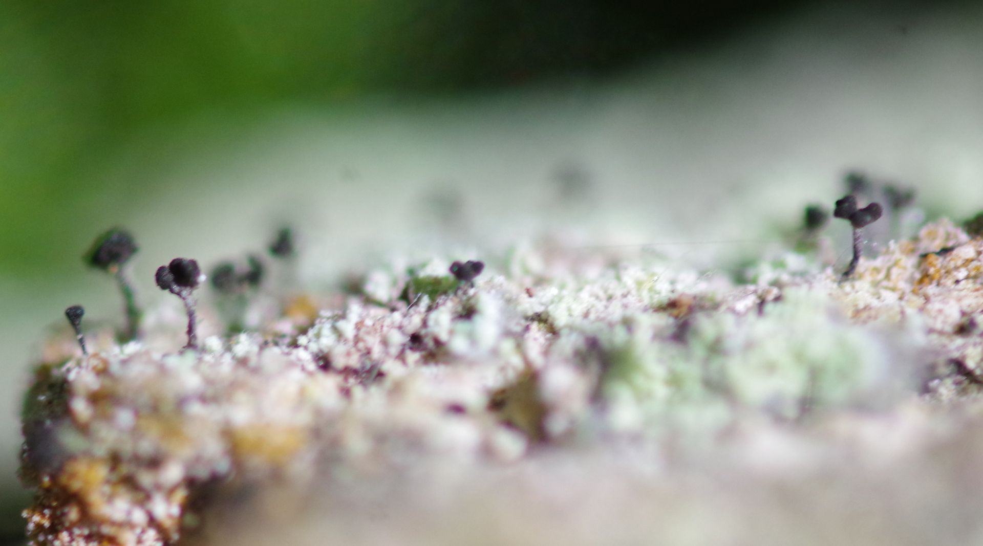Also Chaenothecopsis. Und da hat man das Problem, dass es kaum Bildmaterial zum Vergleich gibt, weder makroskopisch, noch mikroskopisch. Was darauf hindeutet, dass die allesamt selten gefunden werden und dass alle Angaben zu Habit und Biotop auf kleinen Stichproben beruhen und damit offen für Interpretation sind.