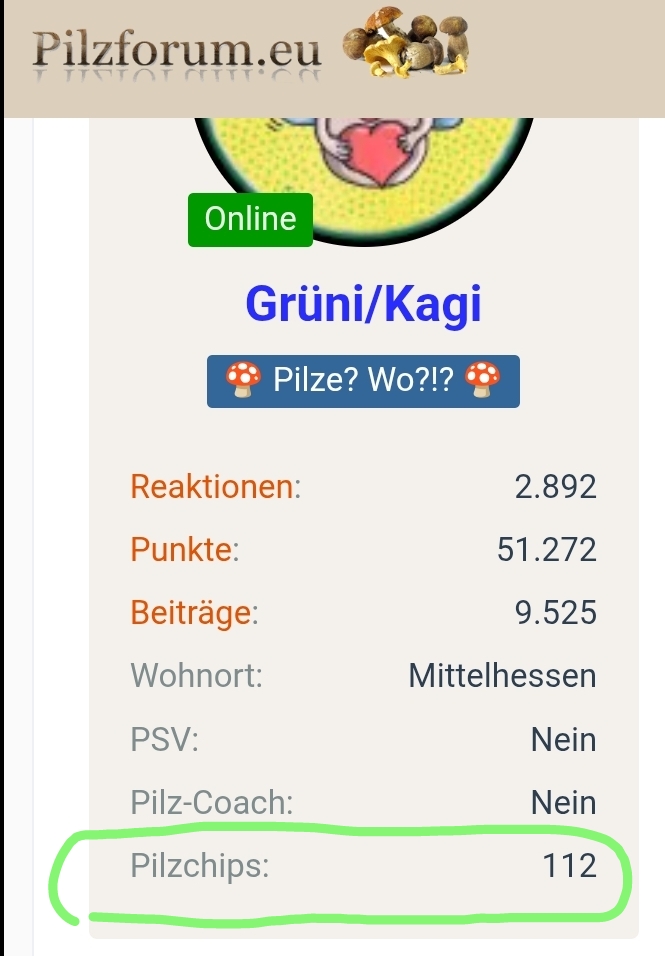 Wenn man hier ins Forum eintritt, kann man sich automatisch einmalig 100 "Pilzchips" gutschreiben.