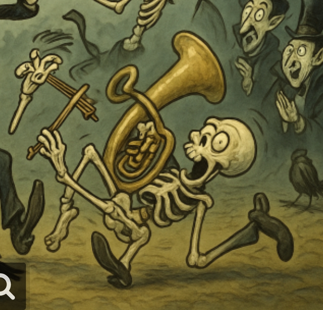 Der war in seinem früheren Leben vermutlich Pilzsammler, hat dann bei der Auferstehung den Hals nicht vollgekriegt und seinem Kollegen oberhalb die Knochen vor der Nase weggeschnappt...