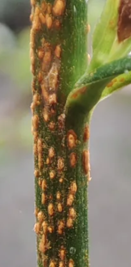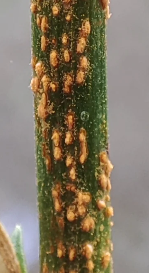 ich habe heute am Stengel einer pfirsichblättrigen Glockenblume dieses orange Gewimmel entdeckt: