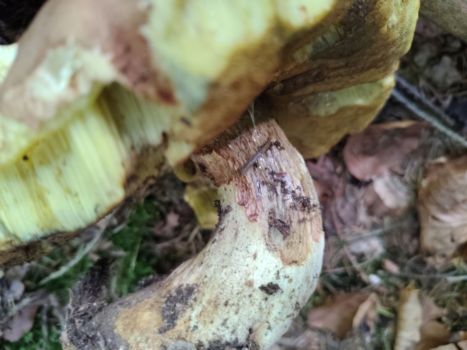 Zum Habitat: Das ist ein Tannendominierter Nadelwald mit Fichte und eingestreuten, kleinen Buchen (die am nächsten stehende etwa 5m hoch). Dort ists an den meisten Stellen zumindest oberflächlich angesäuert aber es gibt auch an einigen Stellen eine Menge Kalk (im Herbst viele Phlegmacien, kalkliebende Schnecklinge und weiteres). Außerdem ist dort Butyriboletus subappendiculatus ein häufiger Pilz, ich kenne dort einige Fundstellen, eine nicht mal 30 m entfernt. Exemplar aus dem Oktober 2024: