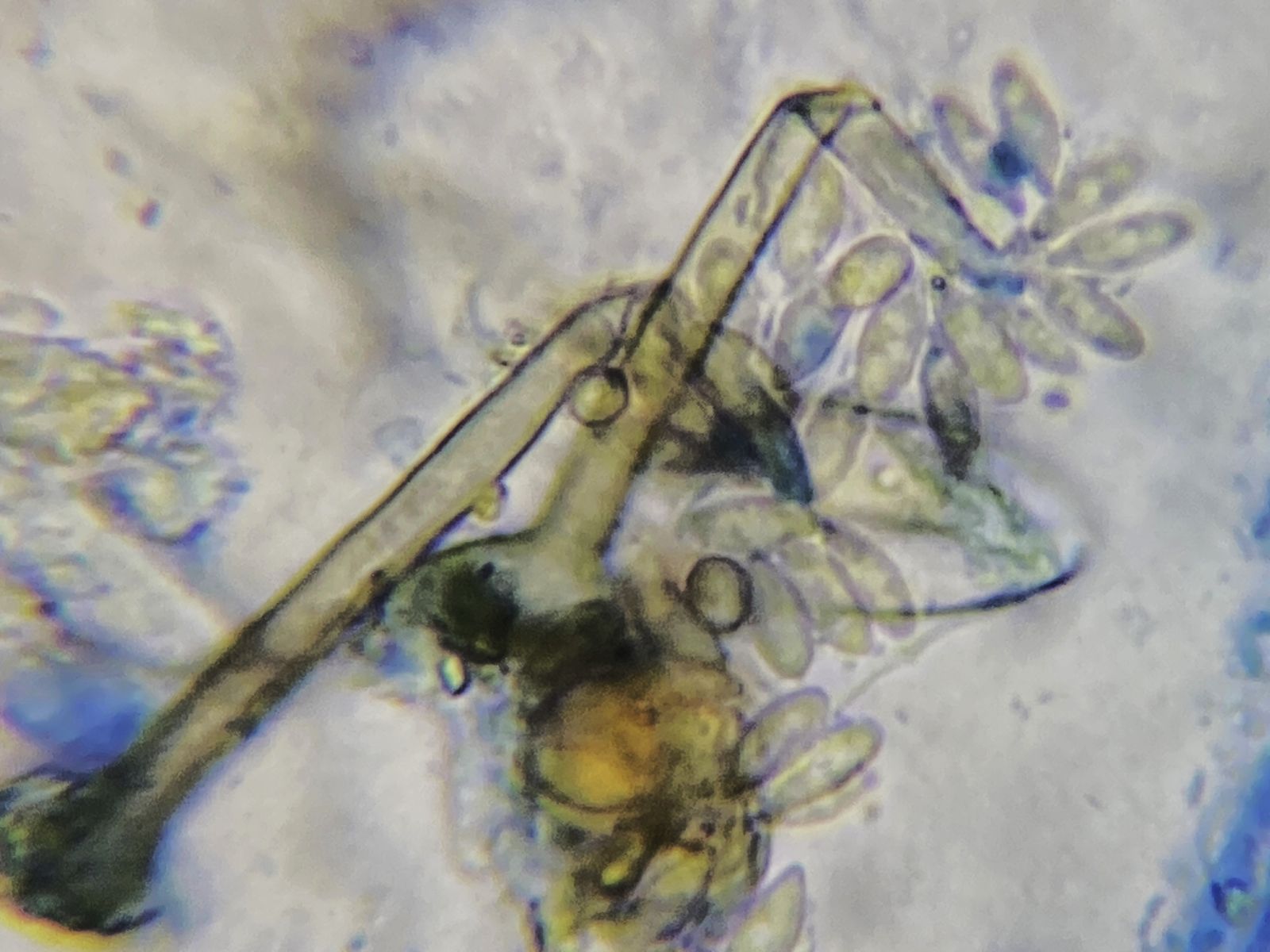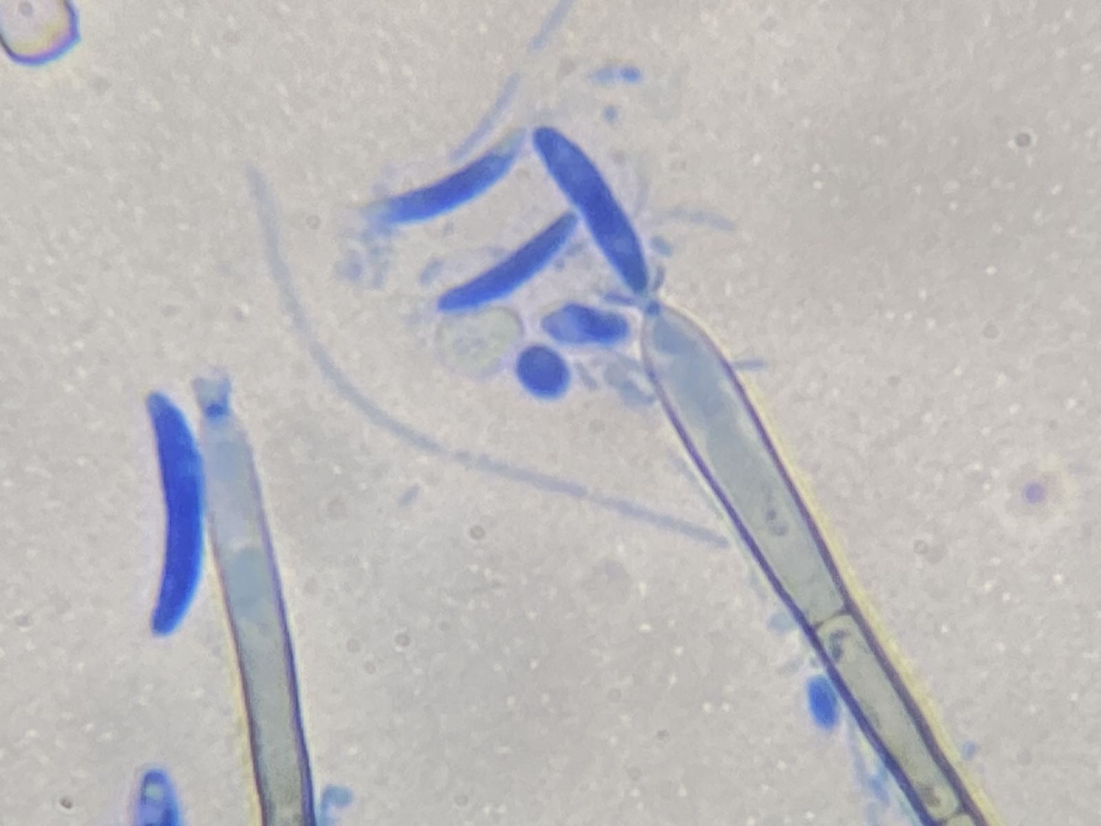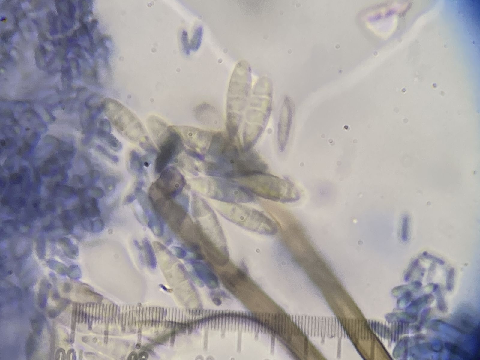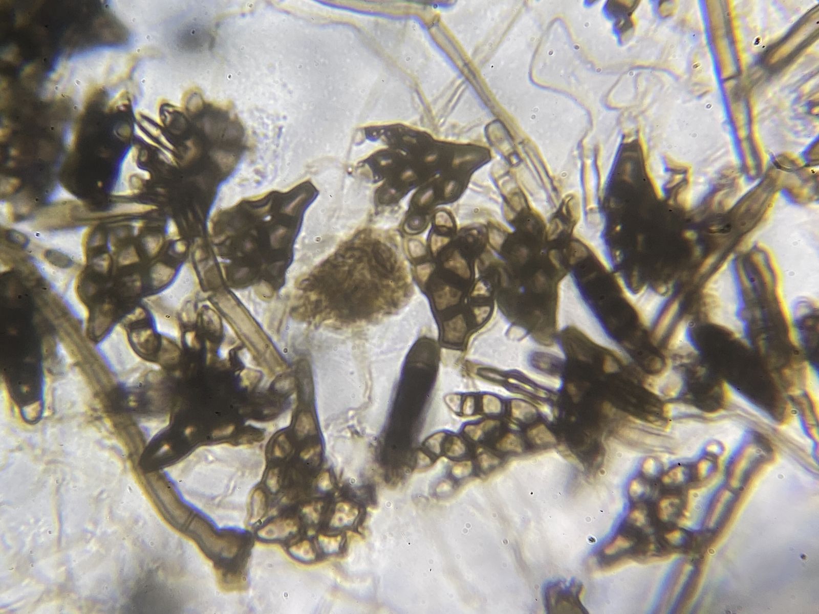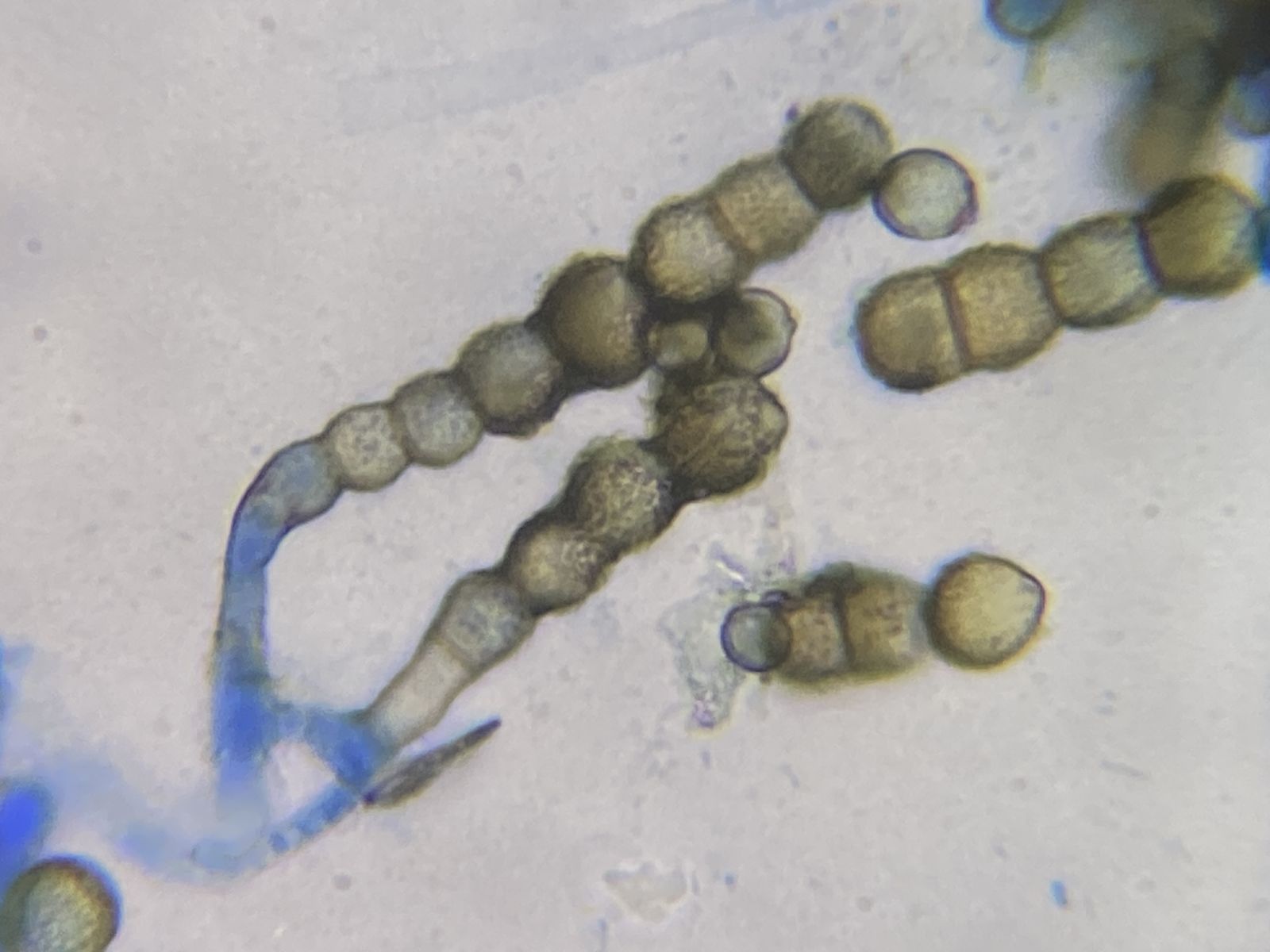 vor einiger Zeit hatte ich bei einem Spaziergang etliche Haselnüsse aufgelesen und in eine Feuchtkammer gegeben. Diese Kammer entwickelte sich zu einem Wunderdöschen mit erstaunlicher Artenvielfalt. Vorteilhaft gegenüber reichhaltigeren Substraten war, dass nicht eine Schimmelpilz-Art alles überwucherte, nachteilig, dass nicht alle Konidienformen wegen der geringen Häufigkeit auch ein zugehöriges Hyphensystem zeigten. Manchmal war es schwierig zu entscheiden, ob Hyphe und Konidien zugehörig sind, da auch zufällige Anhaftungen nicht selten sind (statische Aufladung, klebrige Schleimbildung bei Hyphe oder Konidie, Strömungshemmung für Konidien durch eine Hyphe im Präparat). Oder es lag eine Mischung von Konidien und Hyphen mehrerer Arten vor. Prinzipiell lösen sich reife Konidien extrem leicht von den Hyphen, so dass man im mikroskopischen Präparat oft lange nach originären Sprossungen etc. suchen muss.