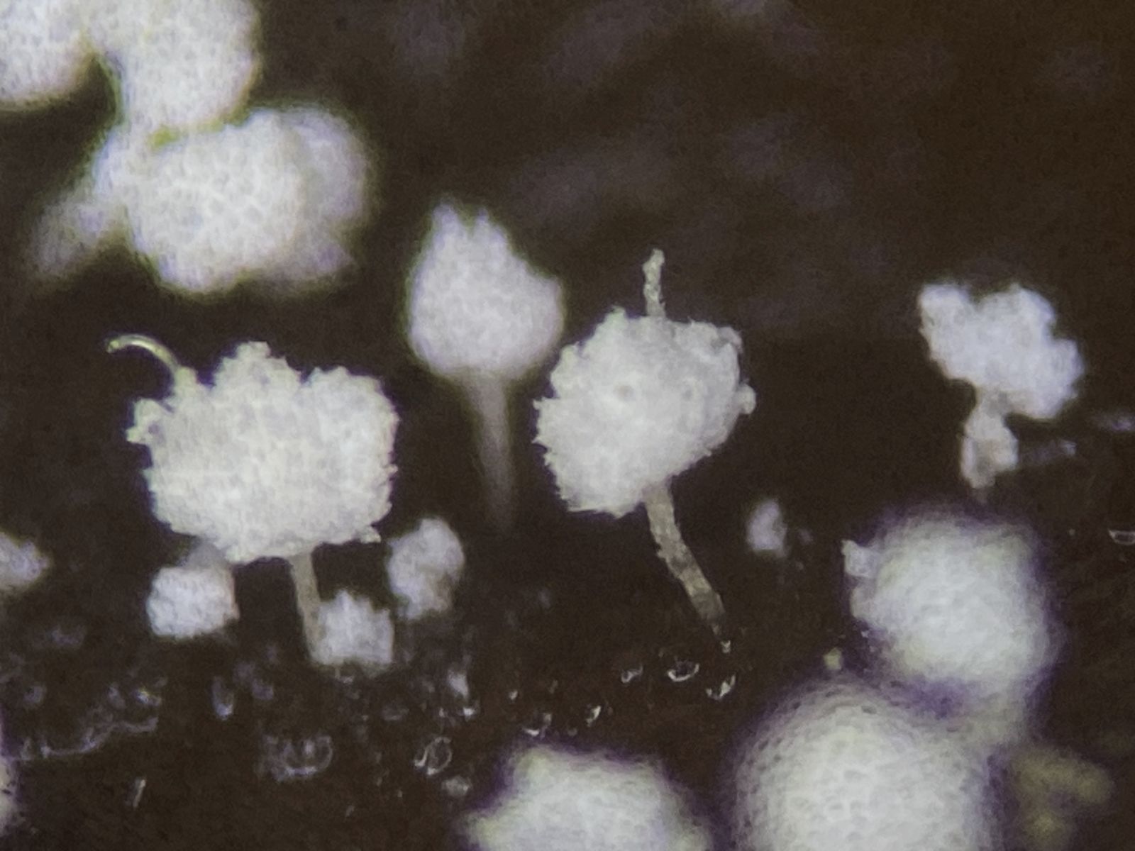 Von den vielen Fotos werde ich hier jeweils nur eines oder zwei zeigen. Die Fotos sind unbearbeitet und kommen nicht von Reinkulturen, man möge daher bitte von Störeffekten absehen. Meine Schimmelpilz-Erfahrung beschränkte sich lediglich auf den engen Lebensmittelbereich. Mit solchen Naturformen bin ich ziemlich unerfahren. Also hoffe ich auf viele Kommentare, Korrekturen und Bestimmungsvorschläge. Besten Dank im Voraus für Eure Unterstützung!
