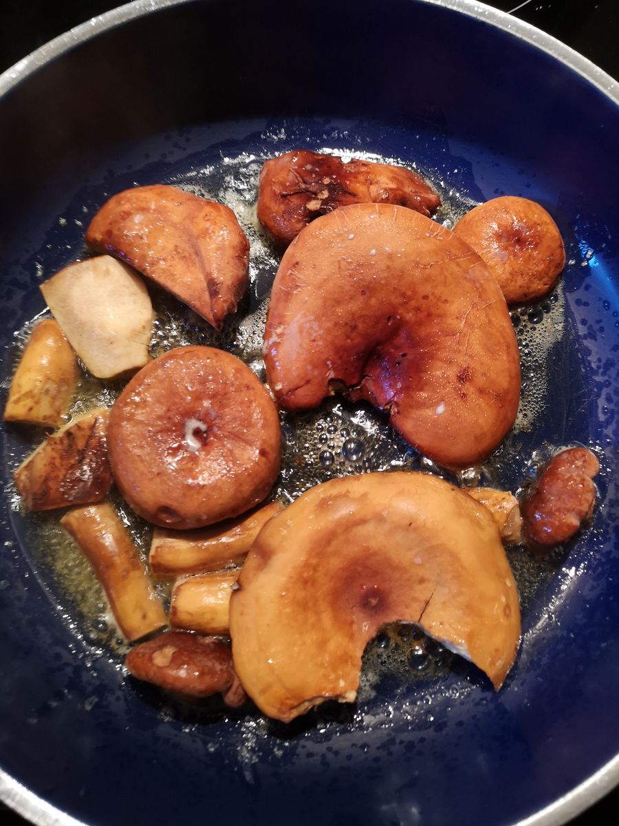 • Brätlinge mag ich eigentlich nur gebraten; roh haben sie mir noch nie so geschmeckt; das Aroma entfaltet sich meines Erachtens erst durch dieses kurze Anbraten.