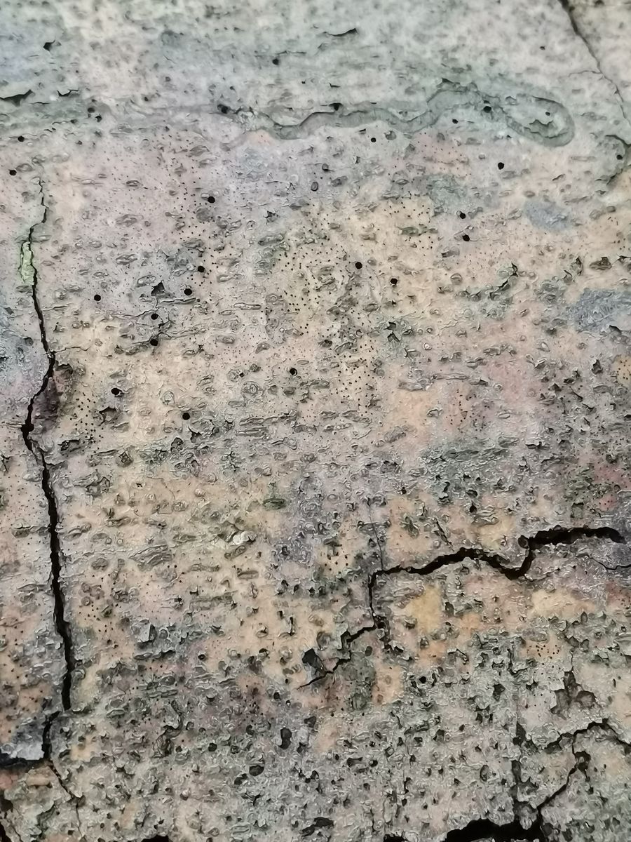 Auf dem ersten Bild mein ich vorjährige Fruchtkörper von diesem Knotigen Schillerporling erkennen zu können.