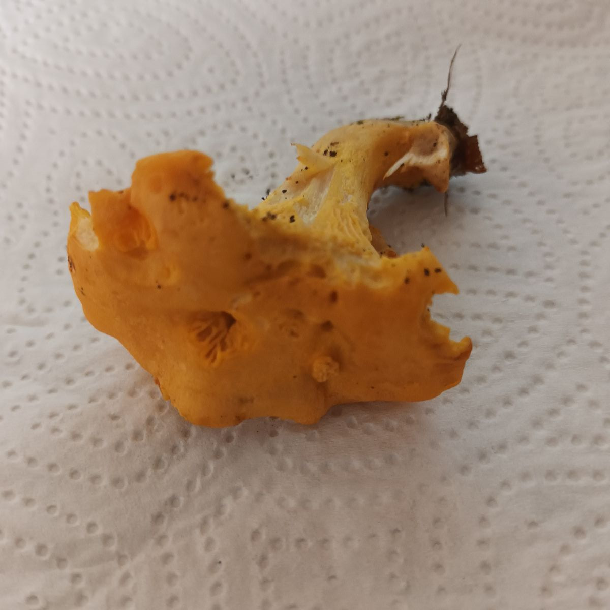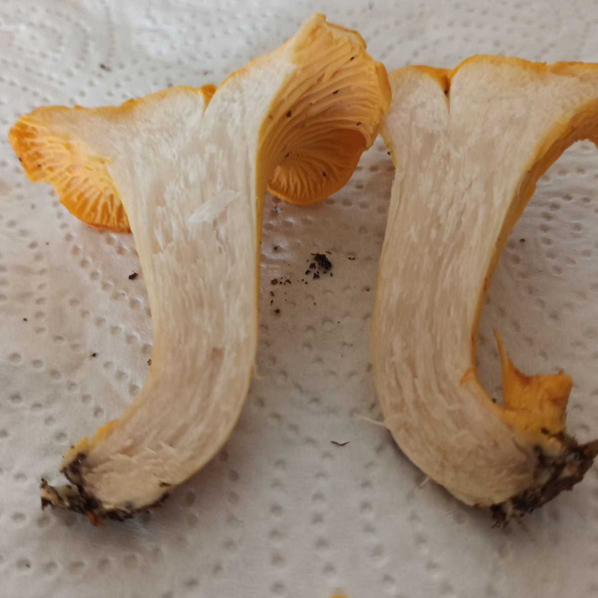 wir waren ja gestern im Wald. Und da fanden wir zu Hauf diesen Pfiffi. Und was mich schon immer ein klein wenig verwundert hat, war, dass das Fleisch von unseren Pfiffis doch heller ist als oft geschrieben steht. Nämlich so: