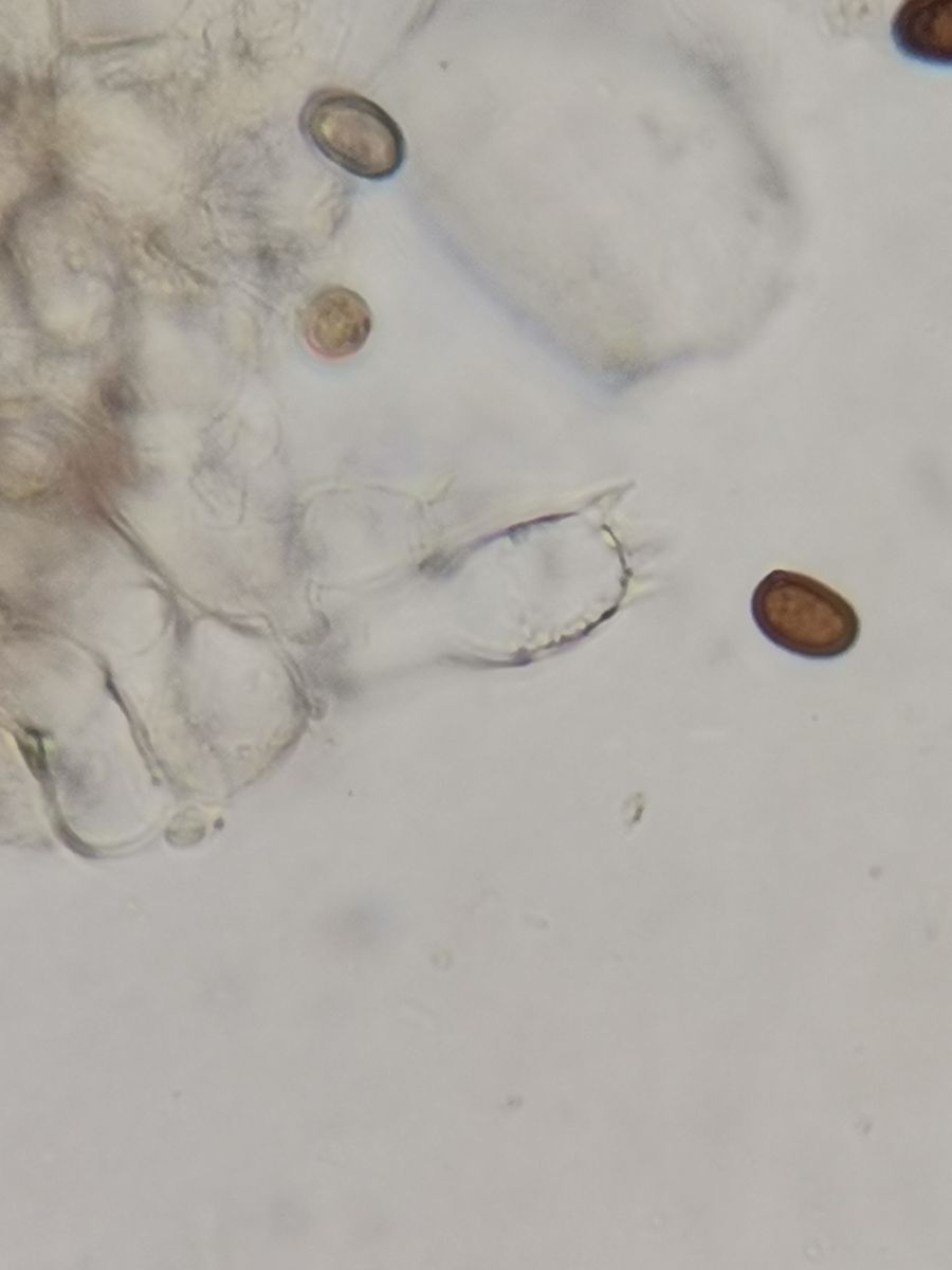 Diese Teile mit den Teufelshörnchen oben dran, das sind die Basidien. An den Hörnchenspitzen reifen die Sporen heran und werden dann irgendwann abgeschleudert. Zystiden sind dagegen grundsätzlich unbehörnt.