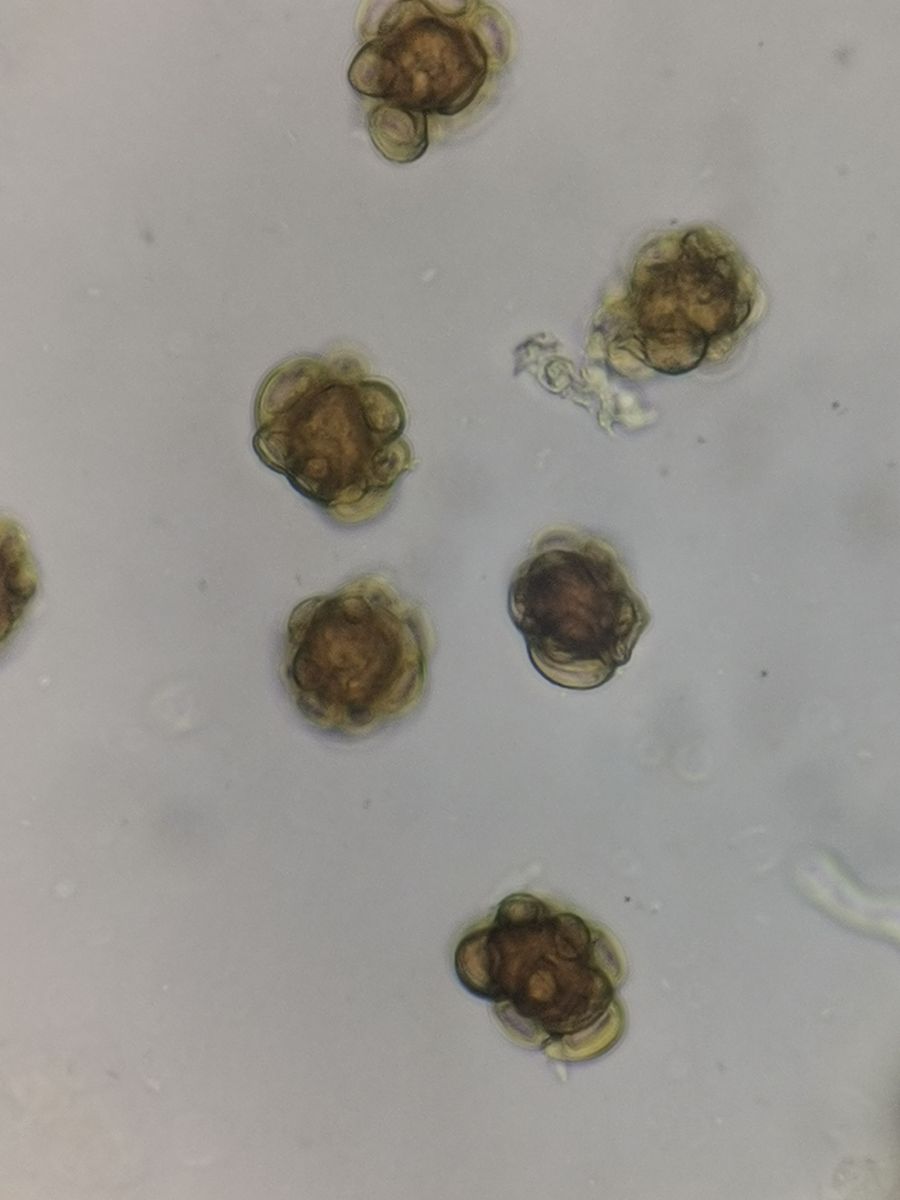 das sind zwar Uredo- und Teliosporen, aber nicht von Urocystis colchici, sondern von irgendeiner Puccinia. Was du in deinen ersten drei Bildern oben zeigst, sind aber keine Rostpilzsporen.