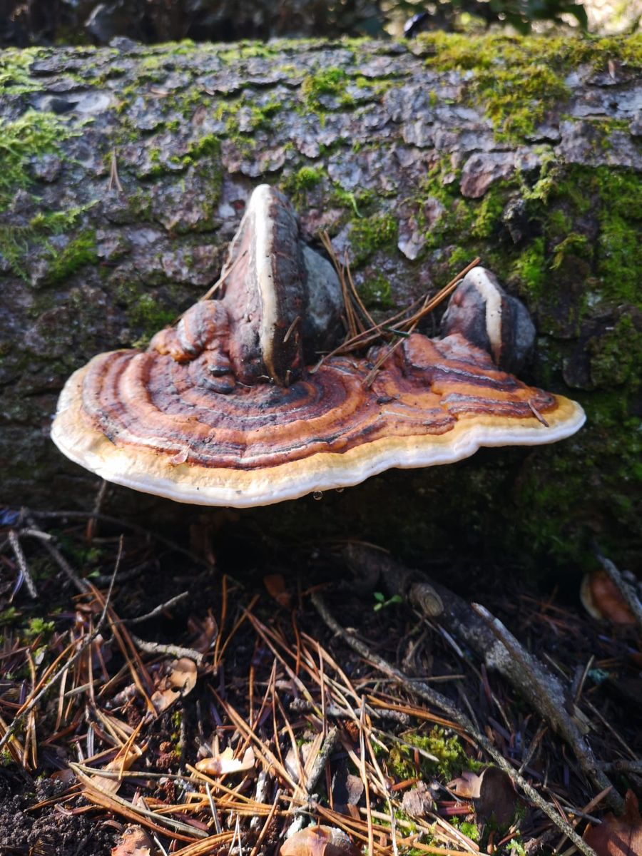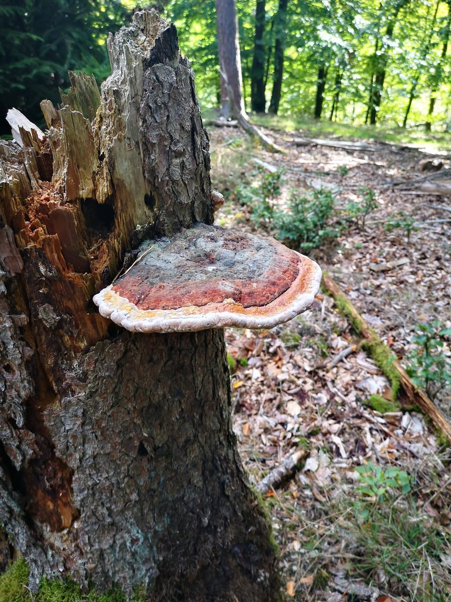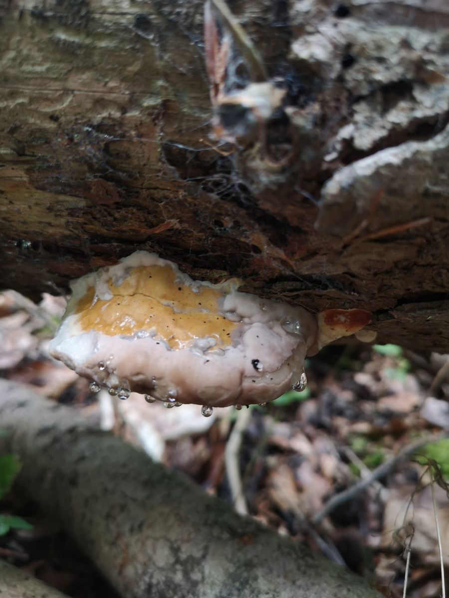 Ein rotrandiger Baumschwamm (Lieblingspilz meines Partners), mit gerade beginnendem Geotropismus.