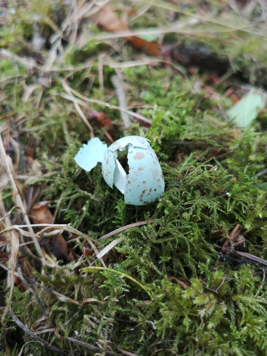 Bruchteil einer Eierschale, vermutlich aus dem Nest einer Amsel (Turdus Merula).