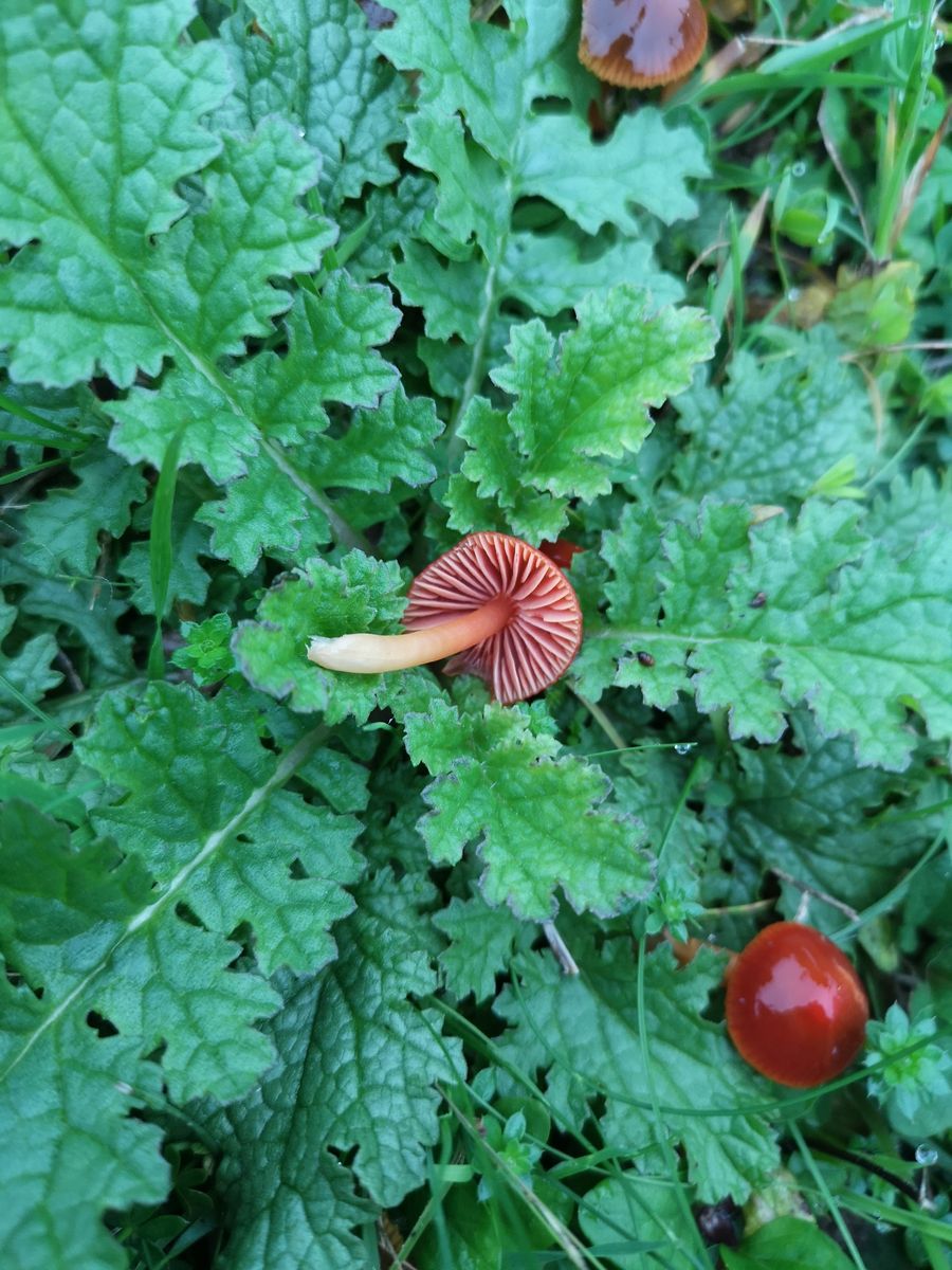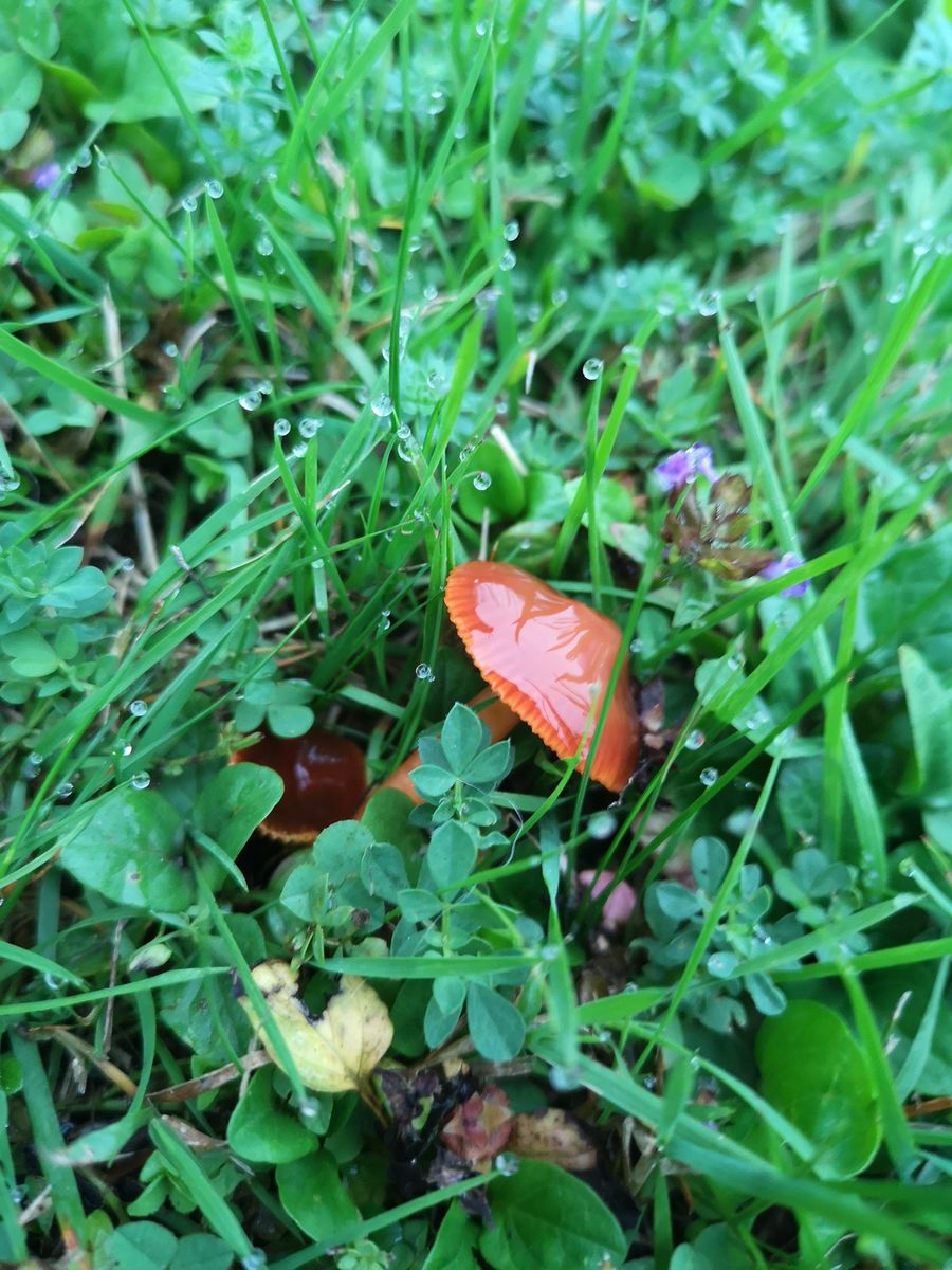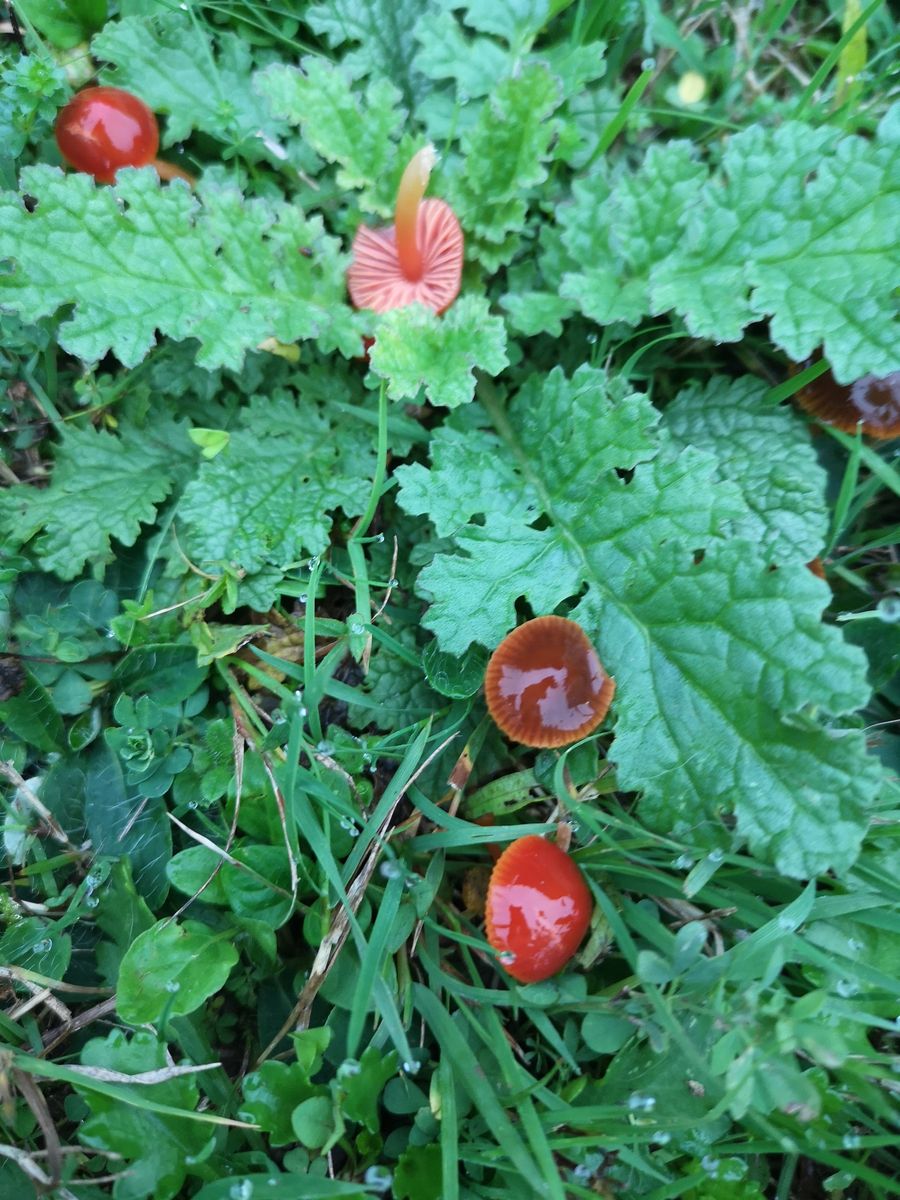Der rote Pilz ist ebenfalls ein Schleimsaftling: Gliophorus sciophana. Im Grunde ist er mit den Papageien verwandt. Auch wenn er rot-ziegelrot ist, so kommt er doch tatsächlich grün aus der Erde und färbt sich dann erst um. Kannst mal nach jungen Fruchtkörper suchen, da kann man noch grüne Flecken sehen. (der auf dem letzten Bild ganz oben hat noch bissl n grünen Schimmer). Ein hübsches Teil, was ich schon einmal finden durfte :)