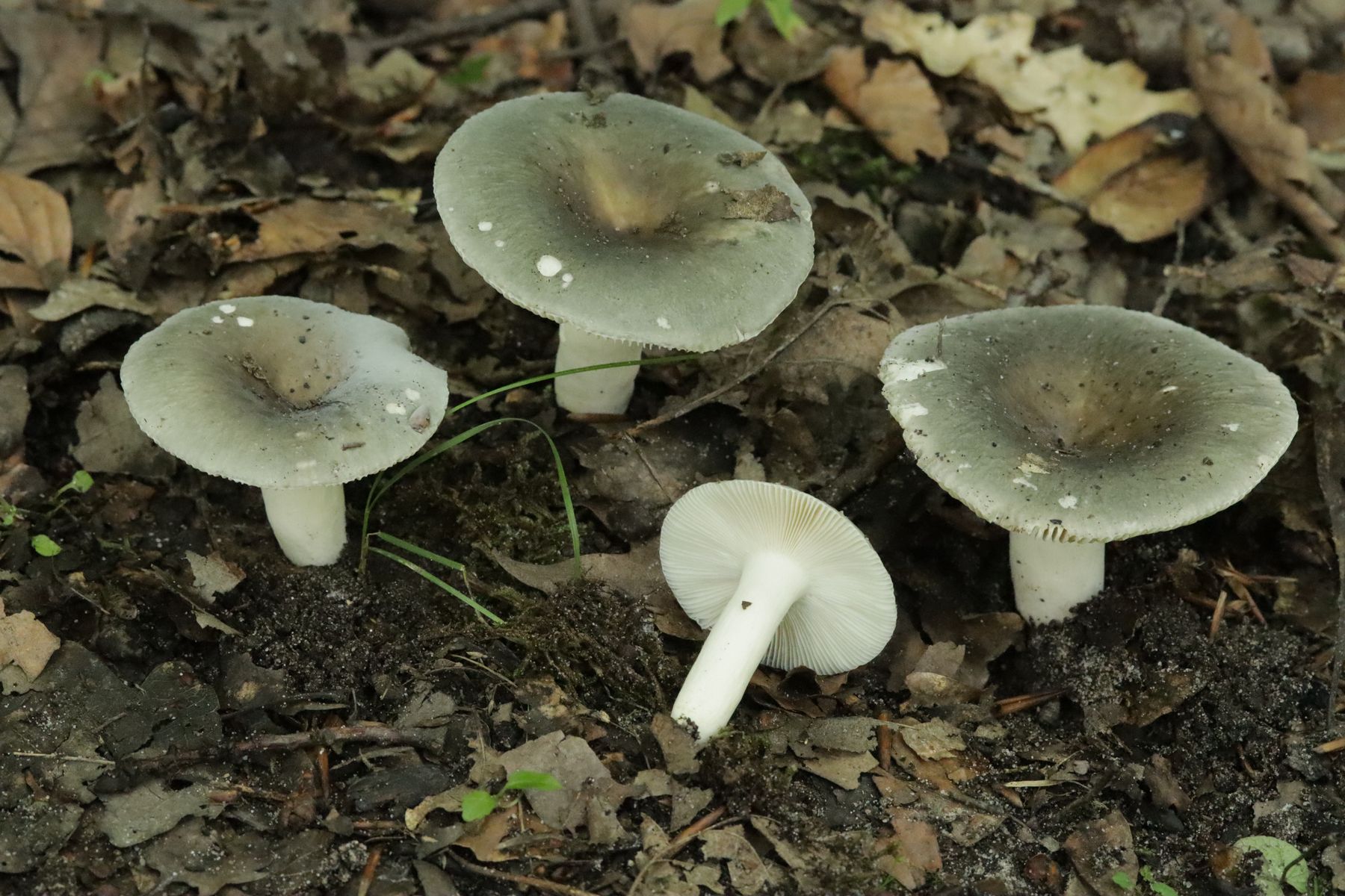 nachdem es im Ruhrgebiet auch mal wieder geregnet hat, kommen die ersten Pilze aus dem Boden. Hier eine kleine Kollektion von Russula parazurea unter Fagus und Quercus vom 23.7.2025 aus dem Duisburger Stadtwald. Die Eisensulfat-Reaktion ist trivial, die Guajak-Reaktion negativ. Sporenpulverfarbe IIb.