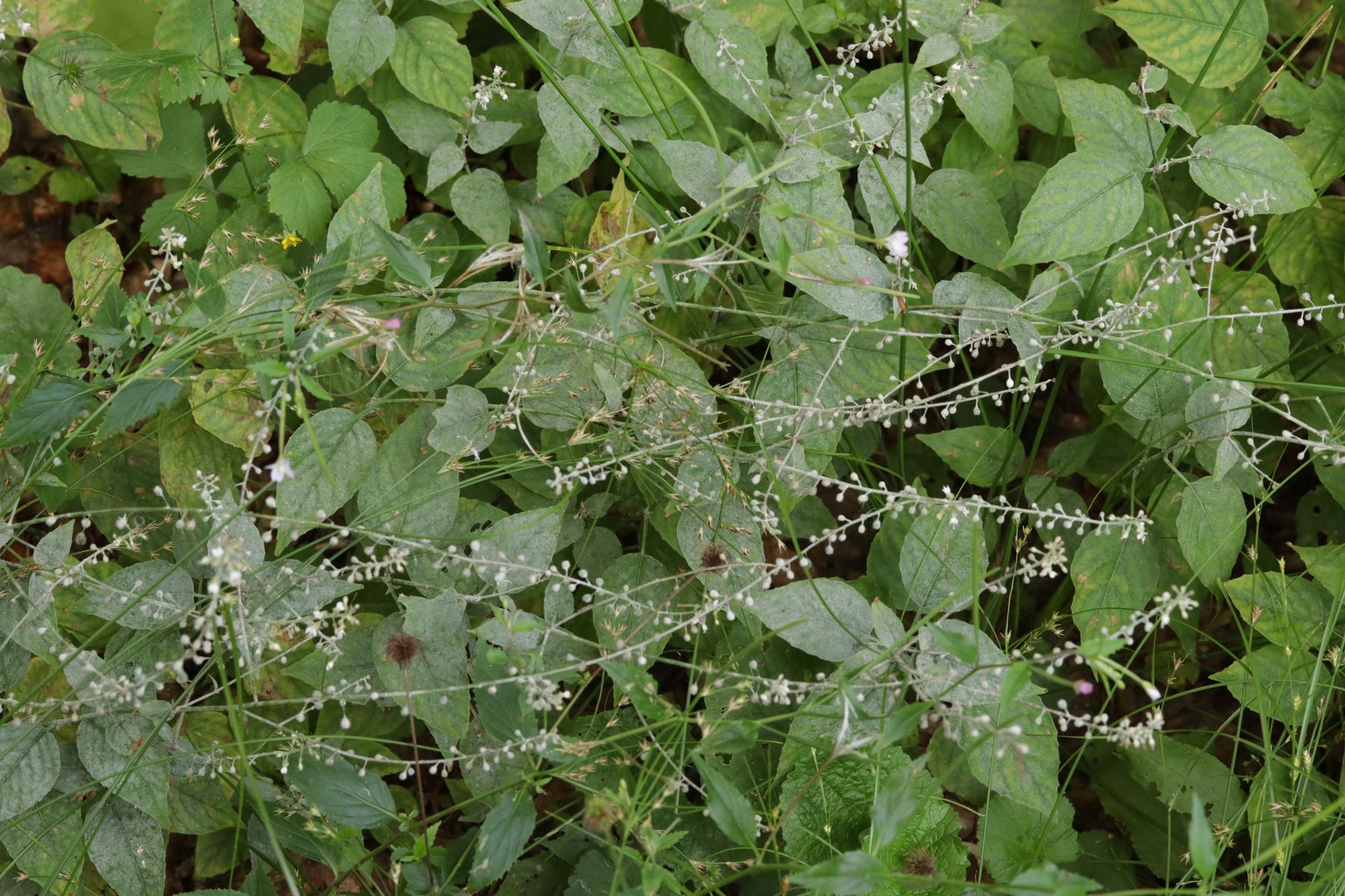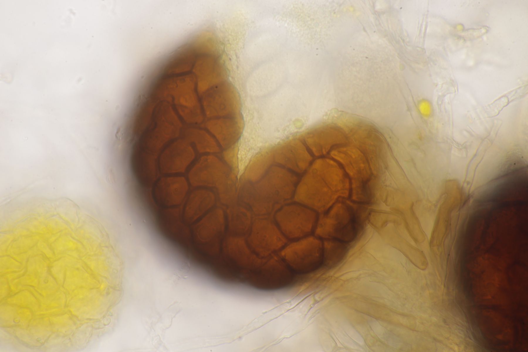 hier mal eine Aufsammlung von Erysiphe circaeae auf Circaea lutetiana aus dem Duisburger Stadtwald vom 23.7.2025. Dieser echte Mehltau ist auf Hexenkraut eigentlich fast immer und überall zu finden. Auf den Blättern und Blütenständen der befallenen Pflanzen sieht man den weißen Rasen der Anamorphe, am Stängel sind die Chasmothecien als dunkle Punkte zu erkennen.