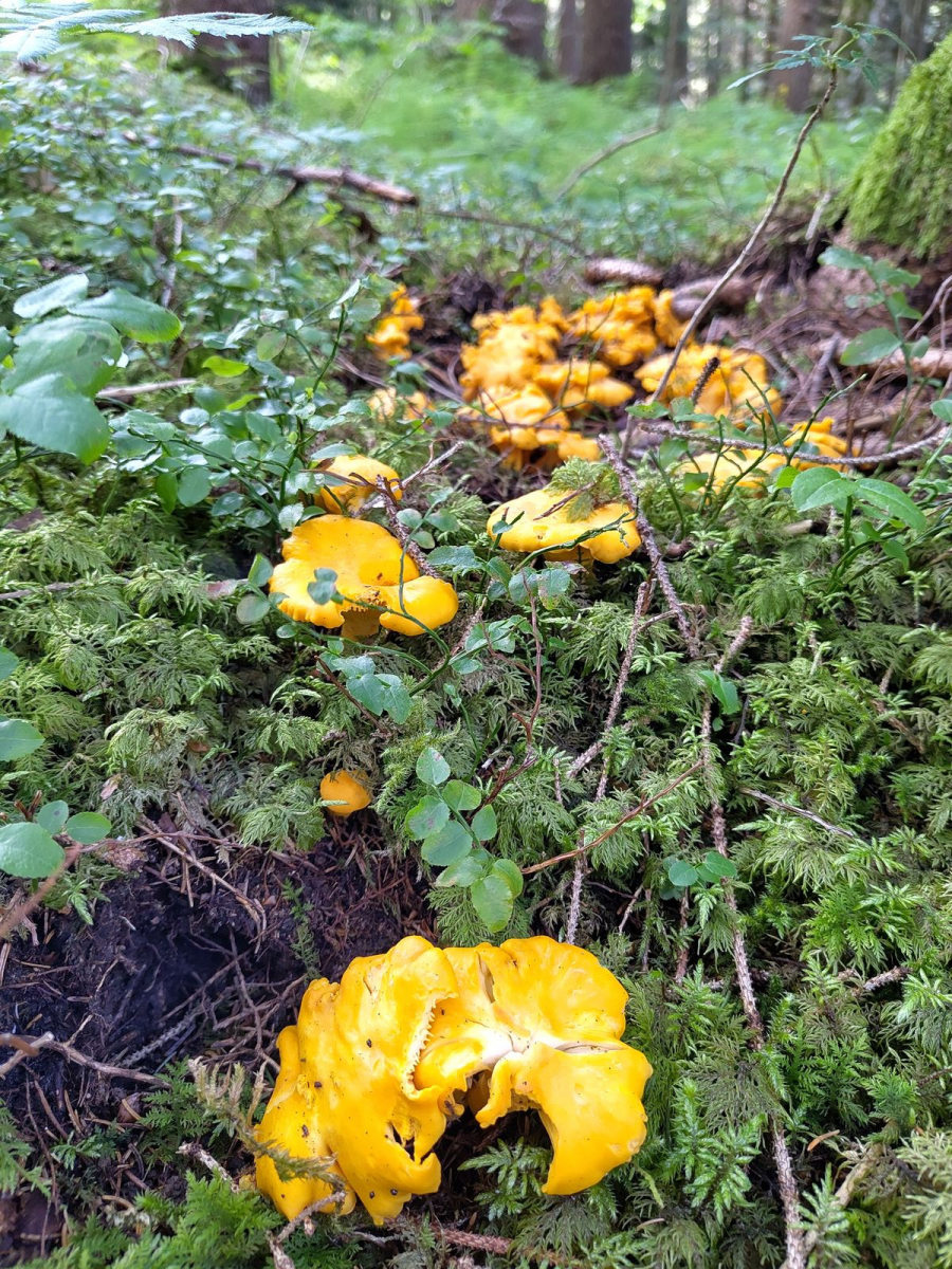 11. Nur an zwei Stellen - dort dafür reichlich - wachsen frische Echte Pfifferlinge :)