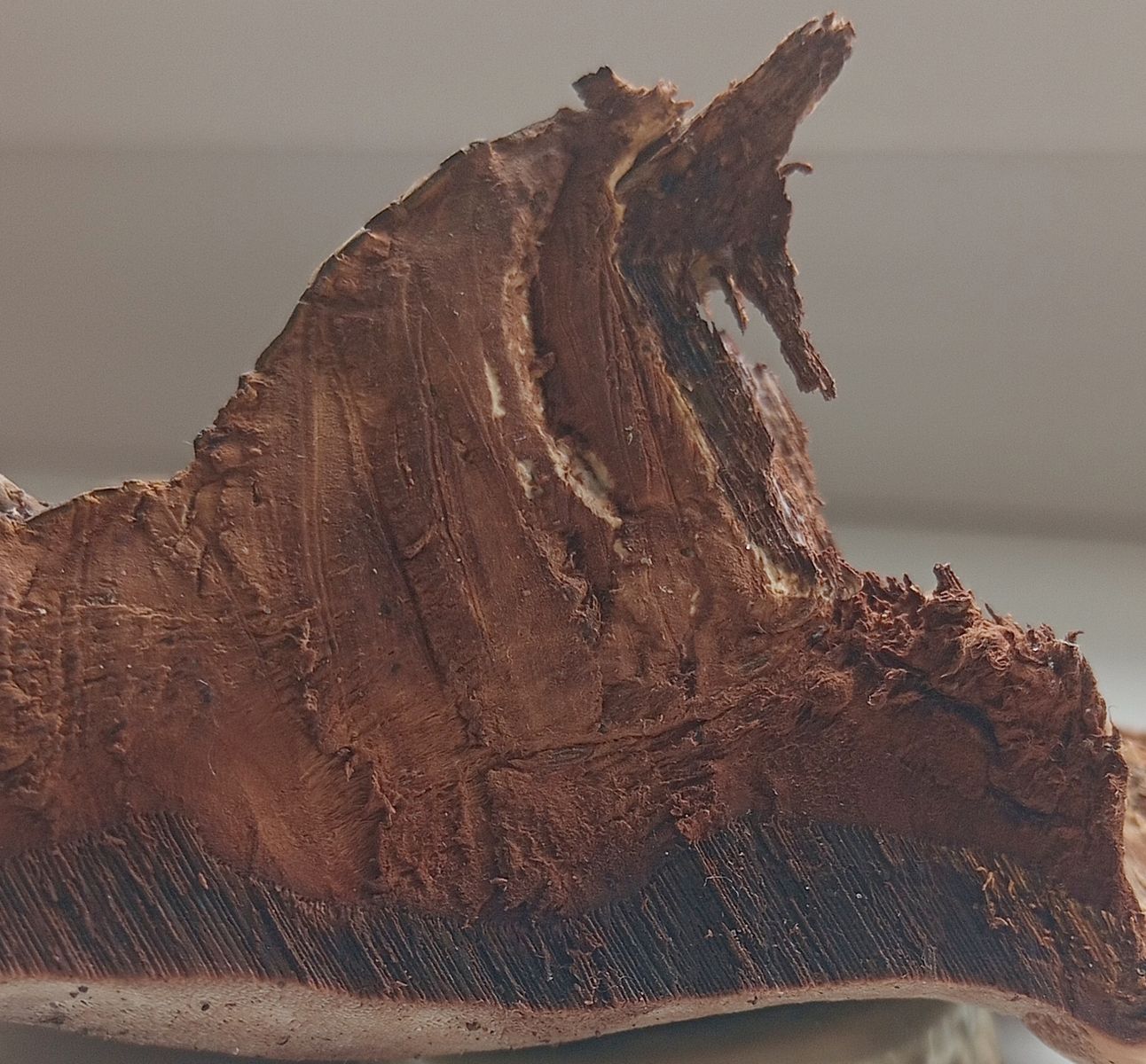 Da hat mir keine Ruhe gelassen. Ich wollte den untersten Fruchtkörper lösen, leider nicht geschafft. Mit einem stabilen Messer habe ich eine Ecke abgeschnitten.
