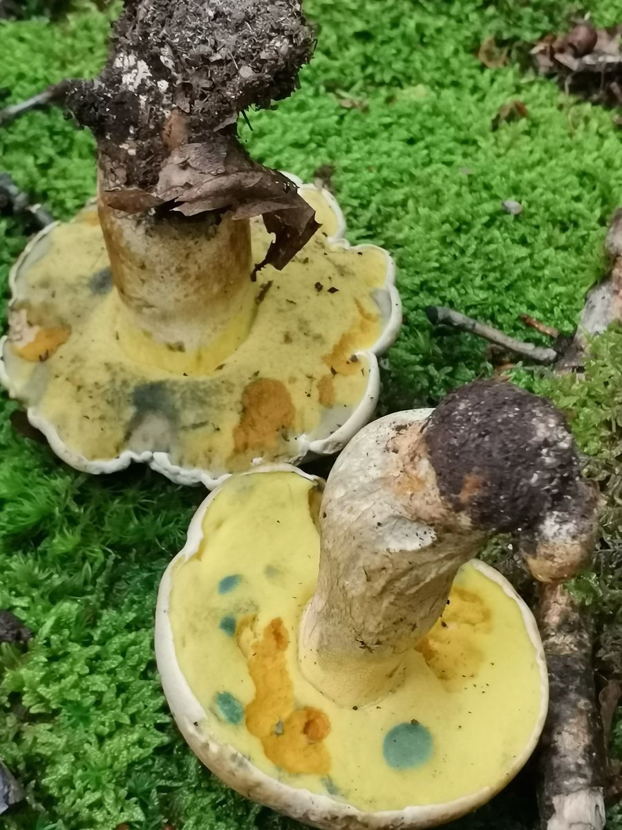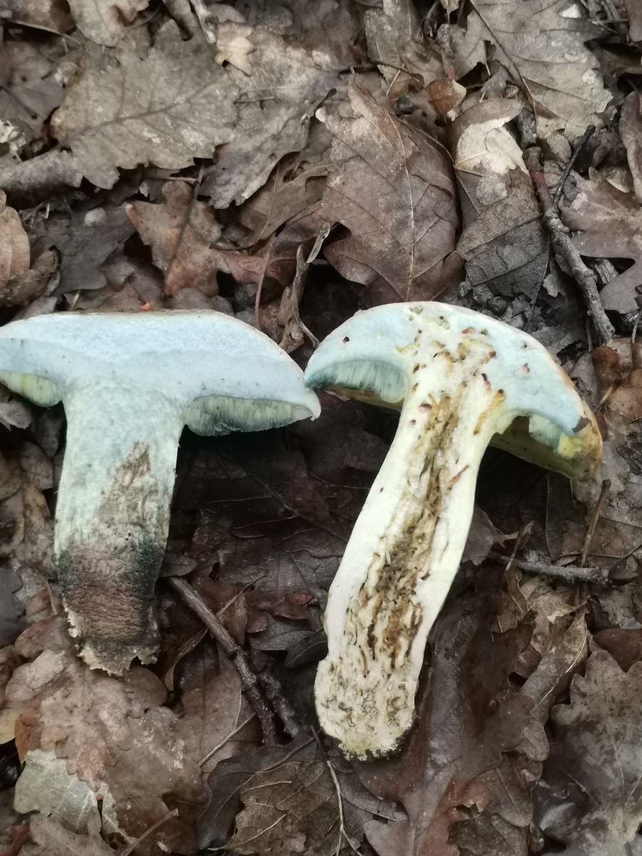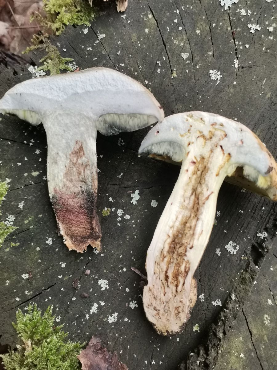 Du zeigst hier beide oder? Der eher schlankere mit rosa am Hut und blauen nur im Hut sieht sehr nach Butyriboletus aus während der klobigere der im ganzen Fruchtkörper blaut eher wie C. radicans aussieht.