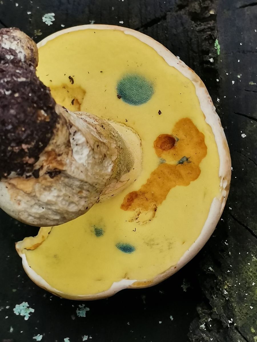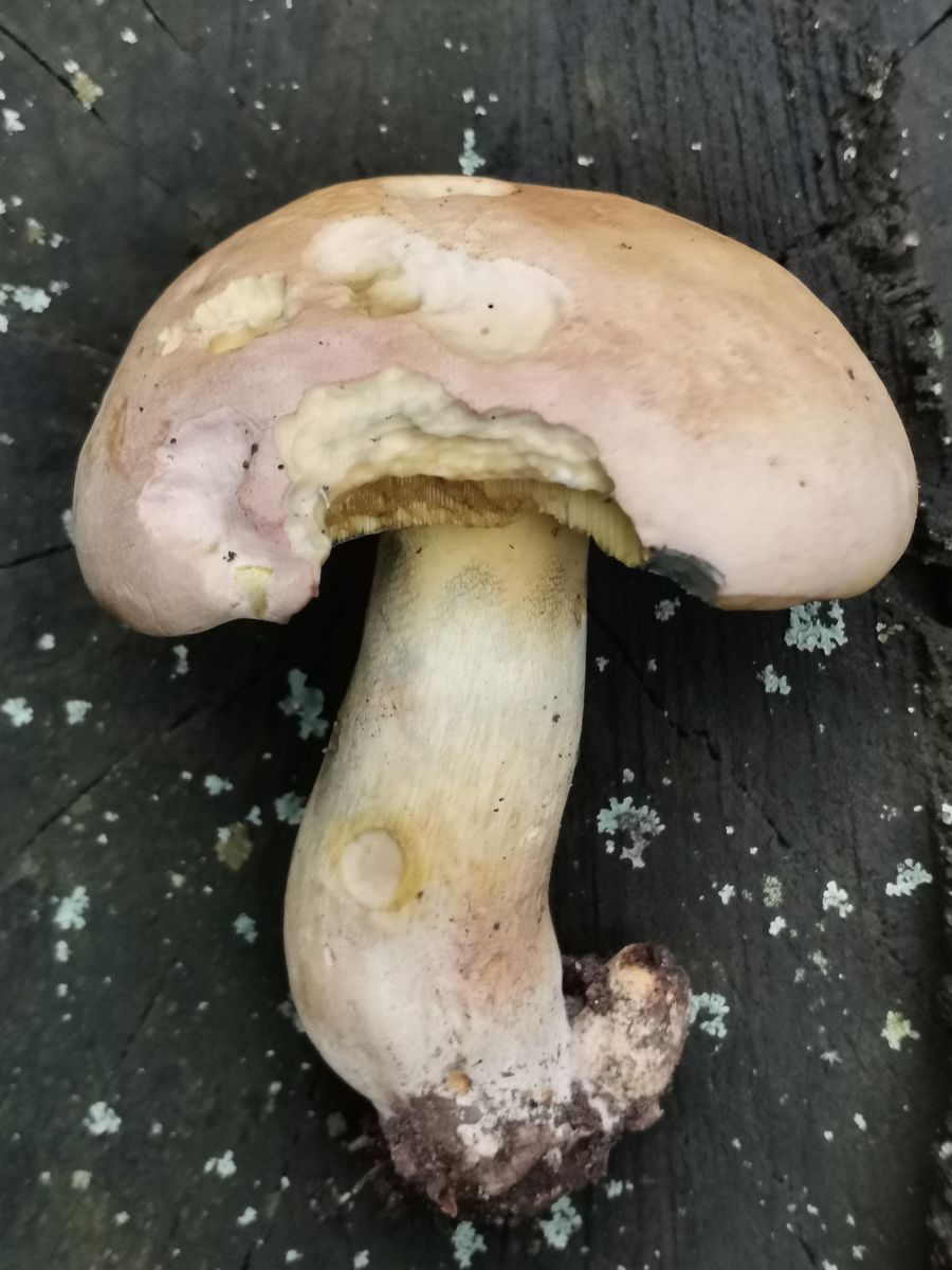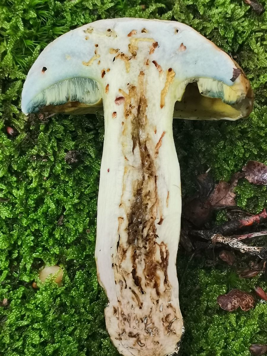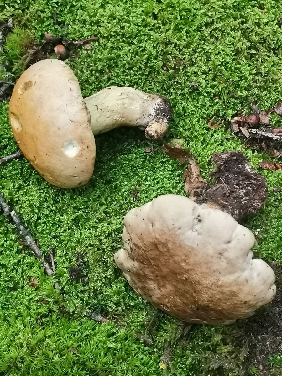Du zeigst hier beide oder? Der eher schlankere mit rosa am Hut und blauen nur im Hut sieht sehr nach Butyriboletus aus während der klobigere der im ganzen Fruchtkörper blaut eher wie C. radicans aussieht.