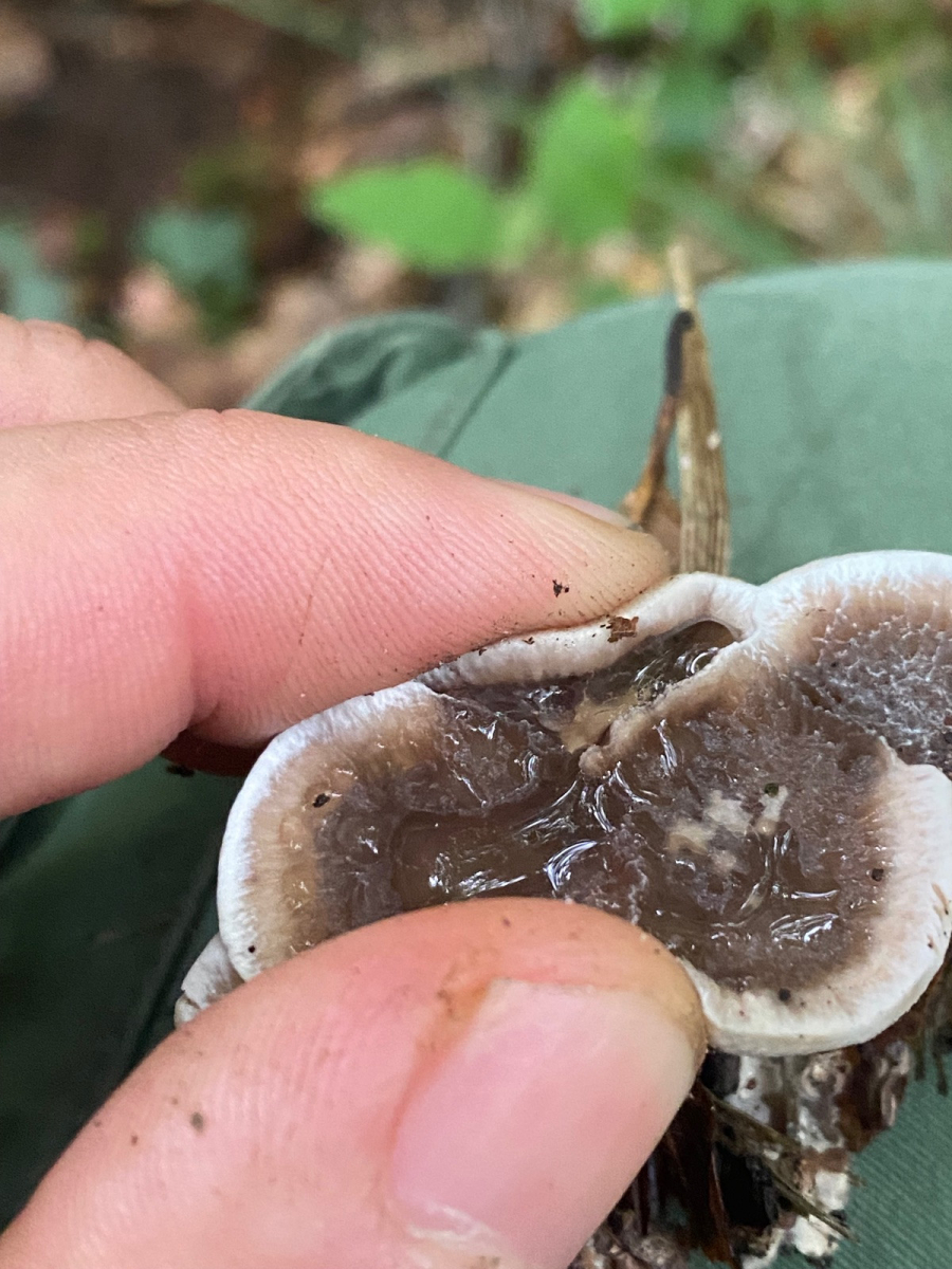 Pilze Recht verbreitet, riechen deutlich sehr süßlich pilzig, Konsistenz gummi und biegsam.
