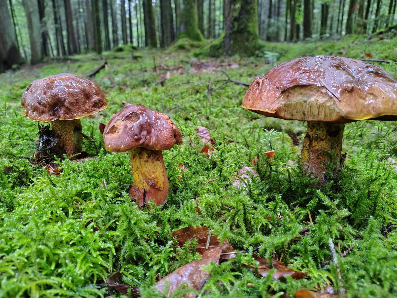 Bei denen erwarte ich jetzt Massenwachstum, die mögen so feuchte Sommer. Zum Vergleich zeige ich auch nochmal Butyriboletus appendiculatus von gestern: