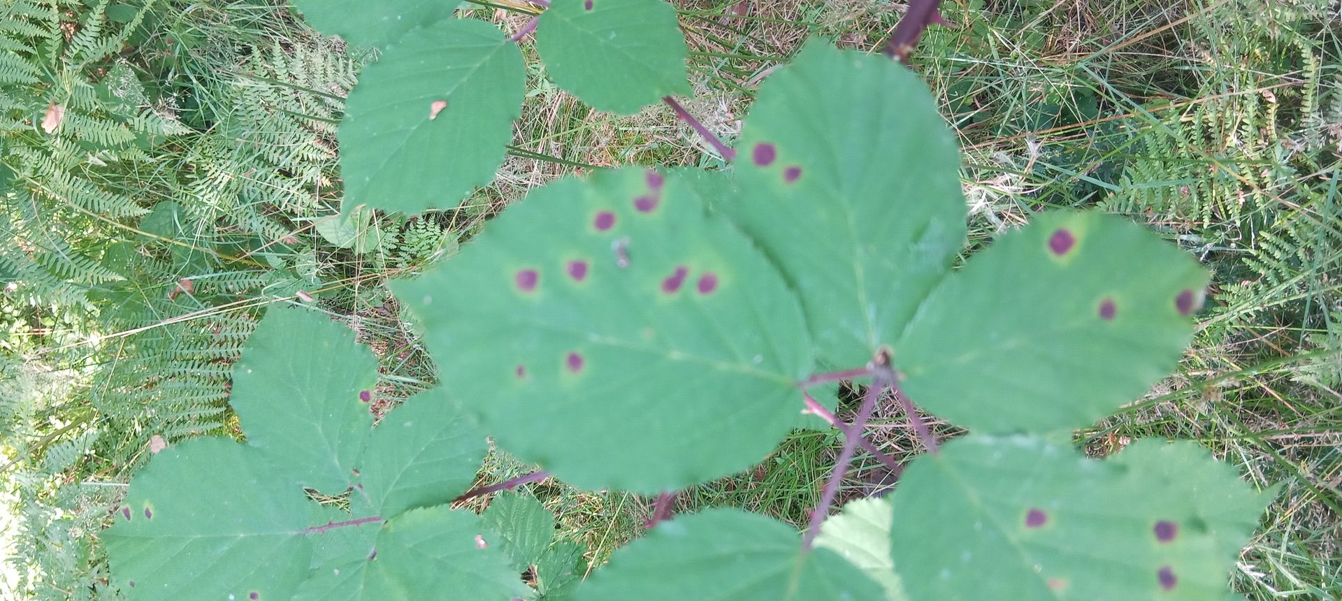 Mit Hut und Stiel ist nicht wirklich was los. Da sind mir die Brombeerblätter aufgefallen.