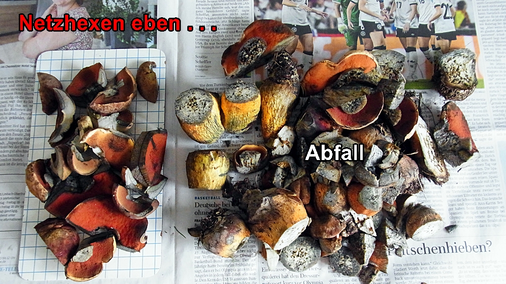 Ich dachte am Sonntag, ich hätte eine gefunden, mich ausnahmsweise gebückt, gepflückt... Es war keine. Völlig madenfrei, damit fehlte ein unbedingtes Bestimmungsmerkmal.