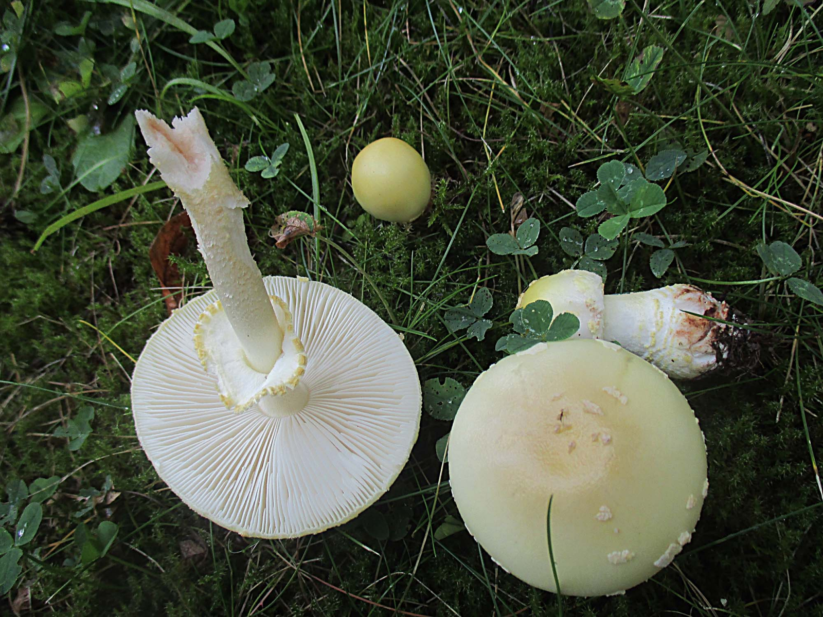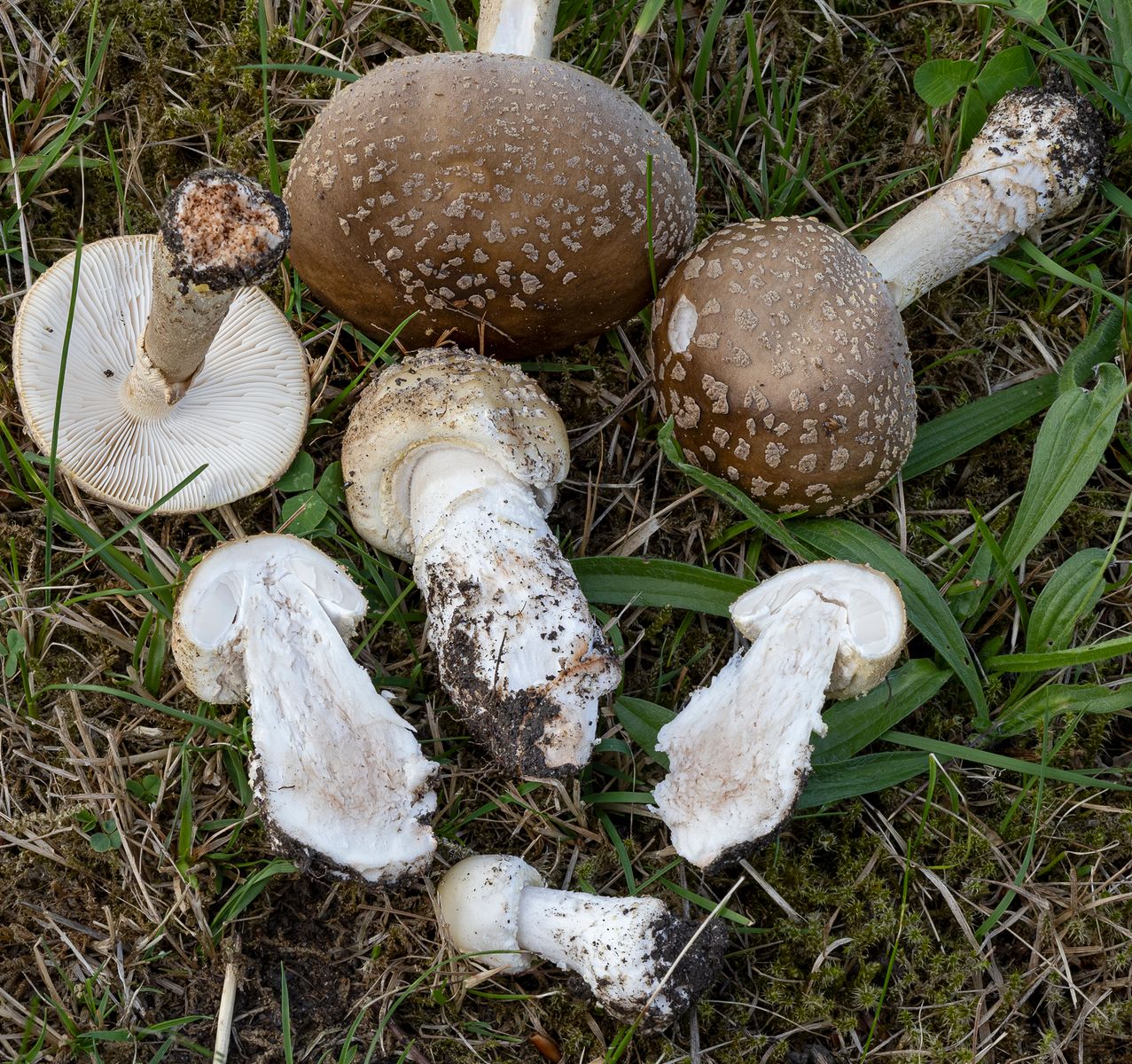 Amanita pantherina, der Pantherpilz als Baby und als Erwachsener,