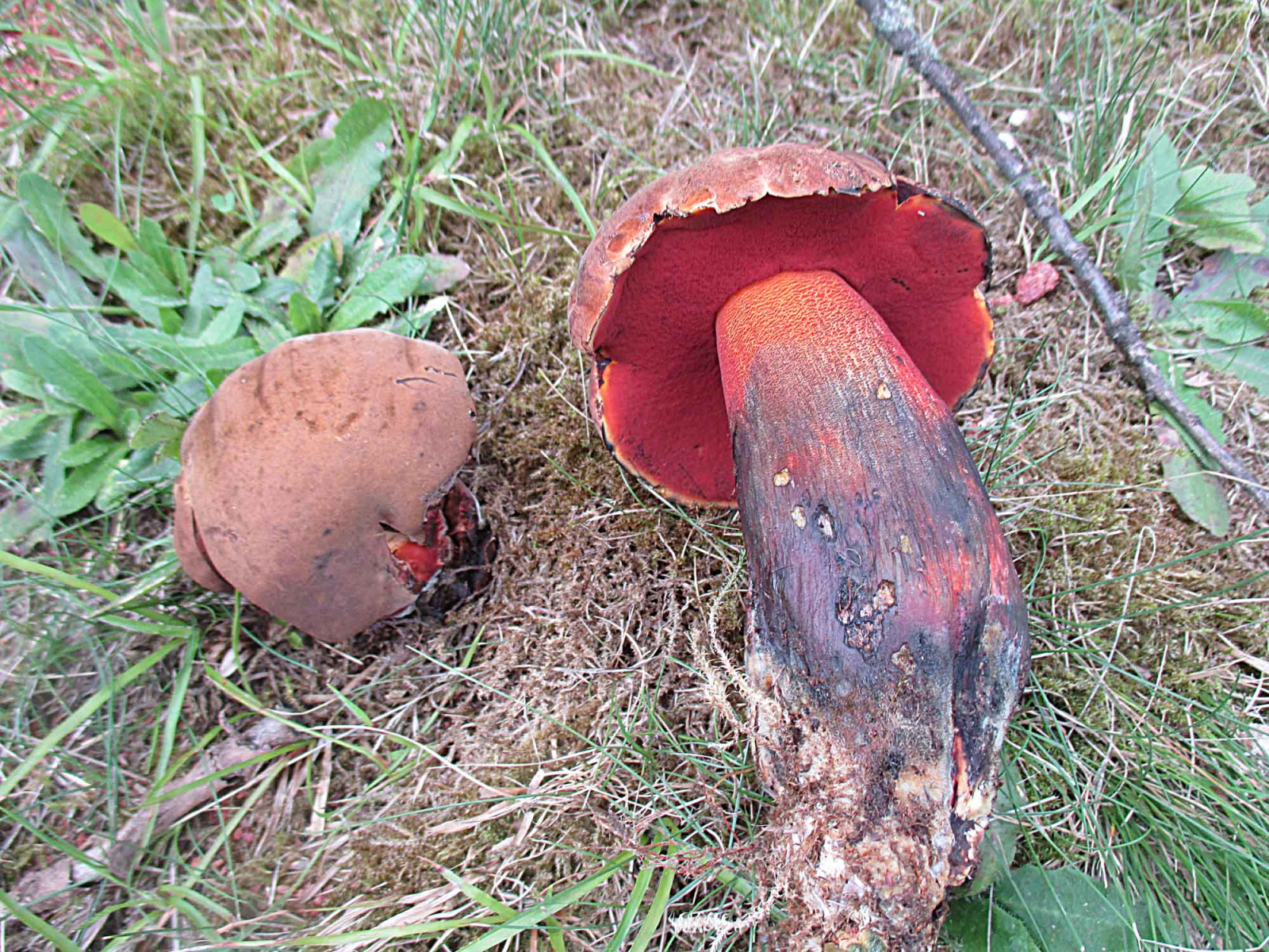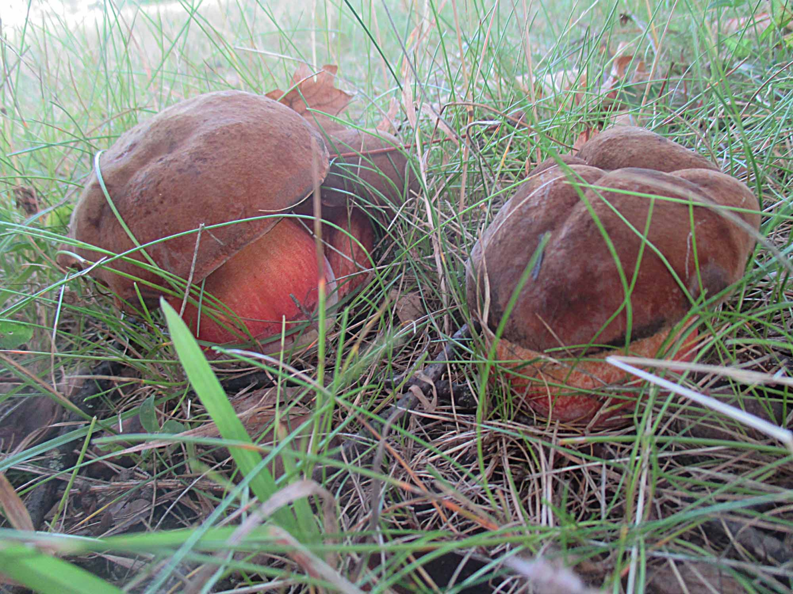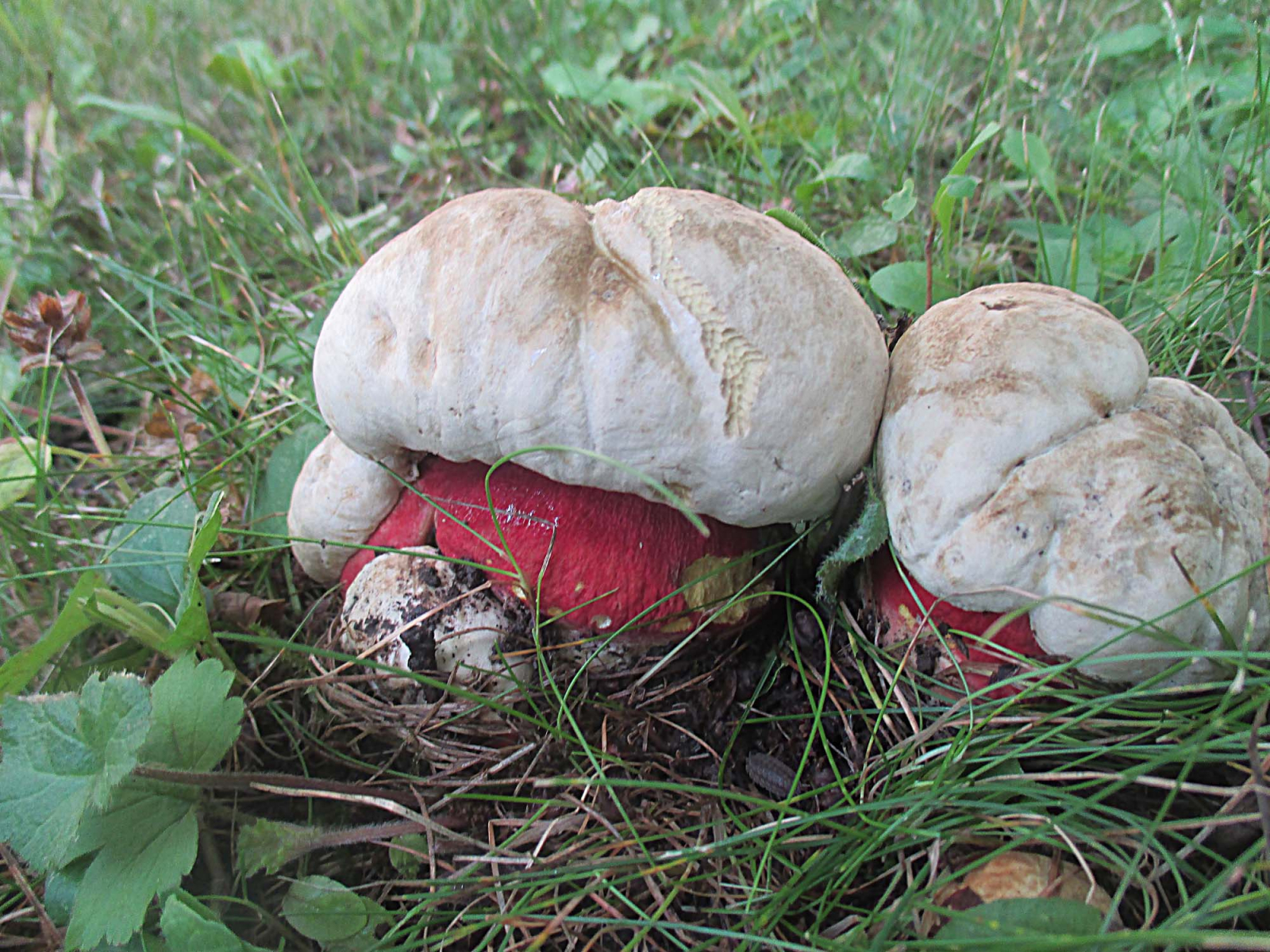 und Suillellus mendax, der Kurznetzige Hexenröhrling. Das Exemplar links oben hatte ein komplettes Netz am Stiel und das rechte überhaupt keins. Die Teile sind schwer einzuordnen.