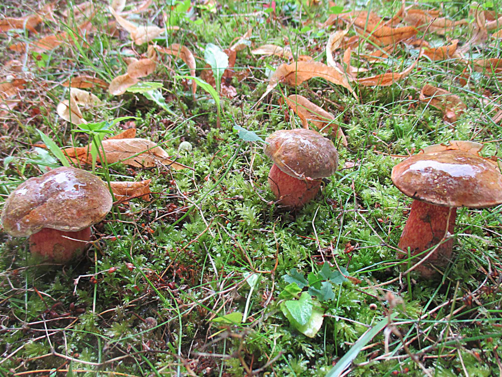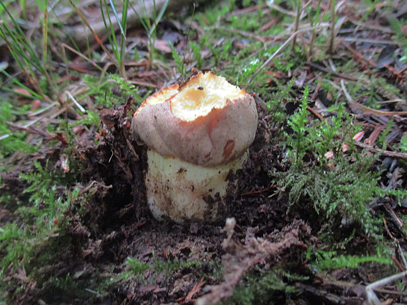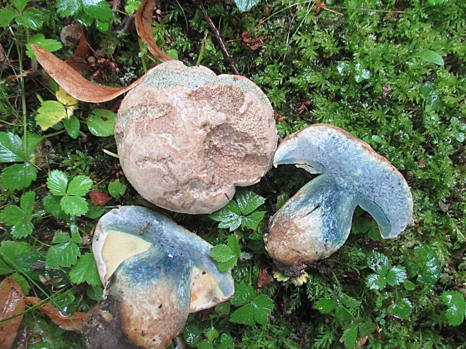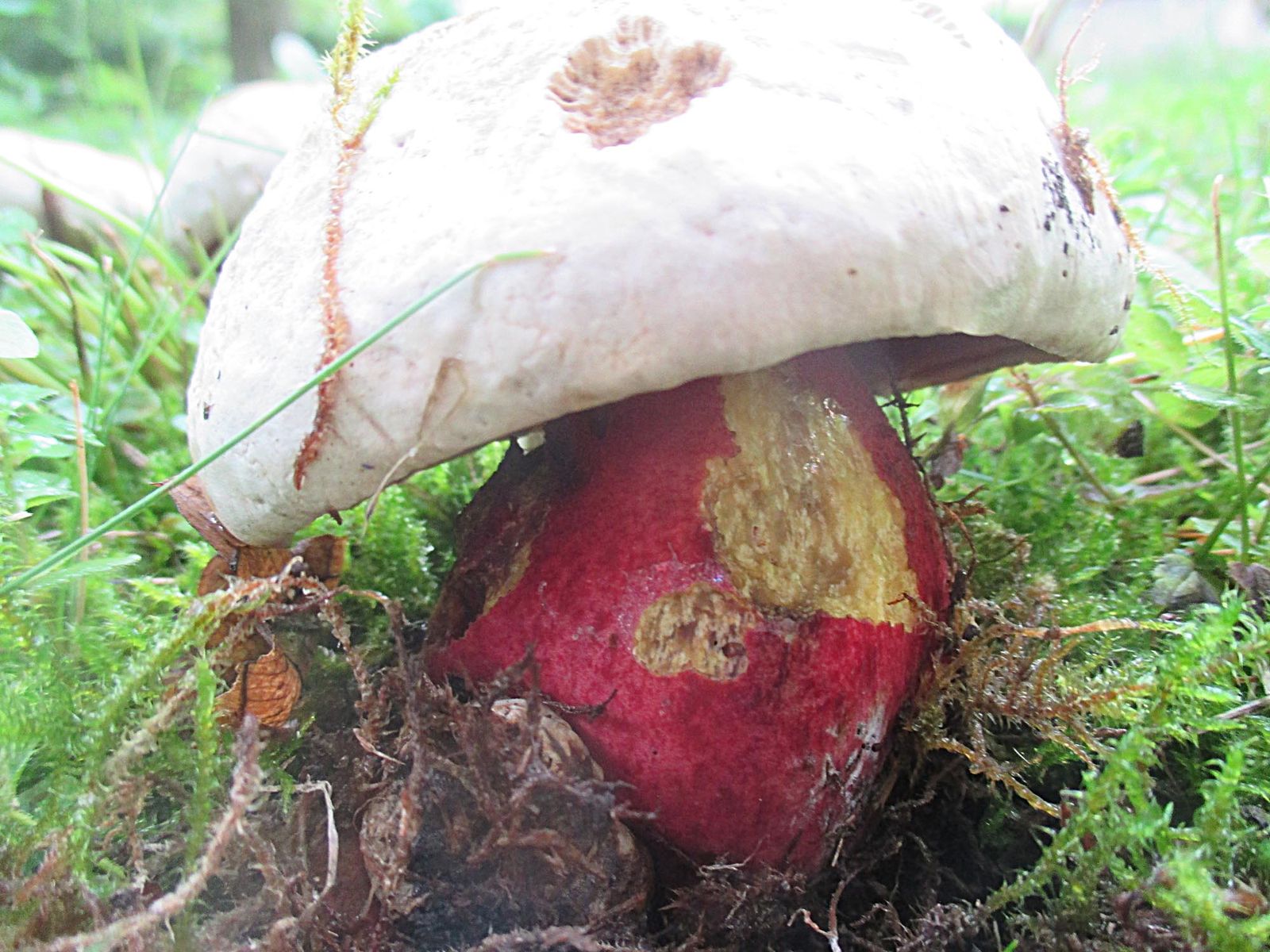 und Suillellus mendax, der Kurznetzige Hexenröhrling. Das Exemplar links oben hatte ein komplettes Netz am Stiel und das rechte überhaupt keins. Die Teile sind schwer einzuordnen.